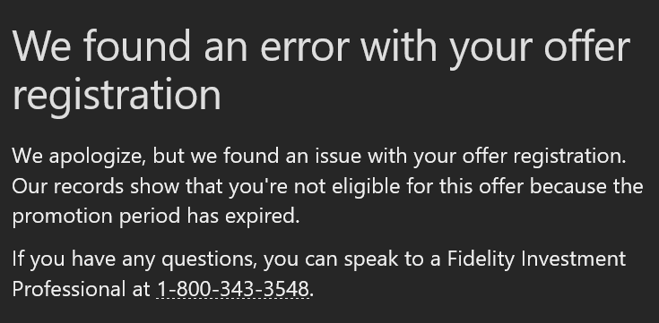 稍微有些不同,帖子里DoC的描述是准确的。之前有个开账户给$100的活动,但这个活动只能从spire app或者spire网站上参与(开账户)才算有效(rule是这么说的,但不知道实际如何),不能从fidelity正经的网站参与。spire可能是fidelity试水的新app,支持$1买入,但IT很渣就是了