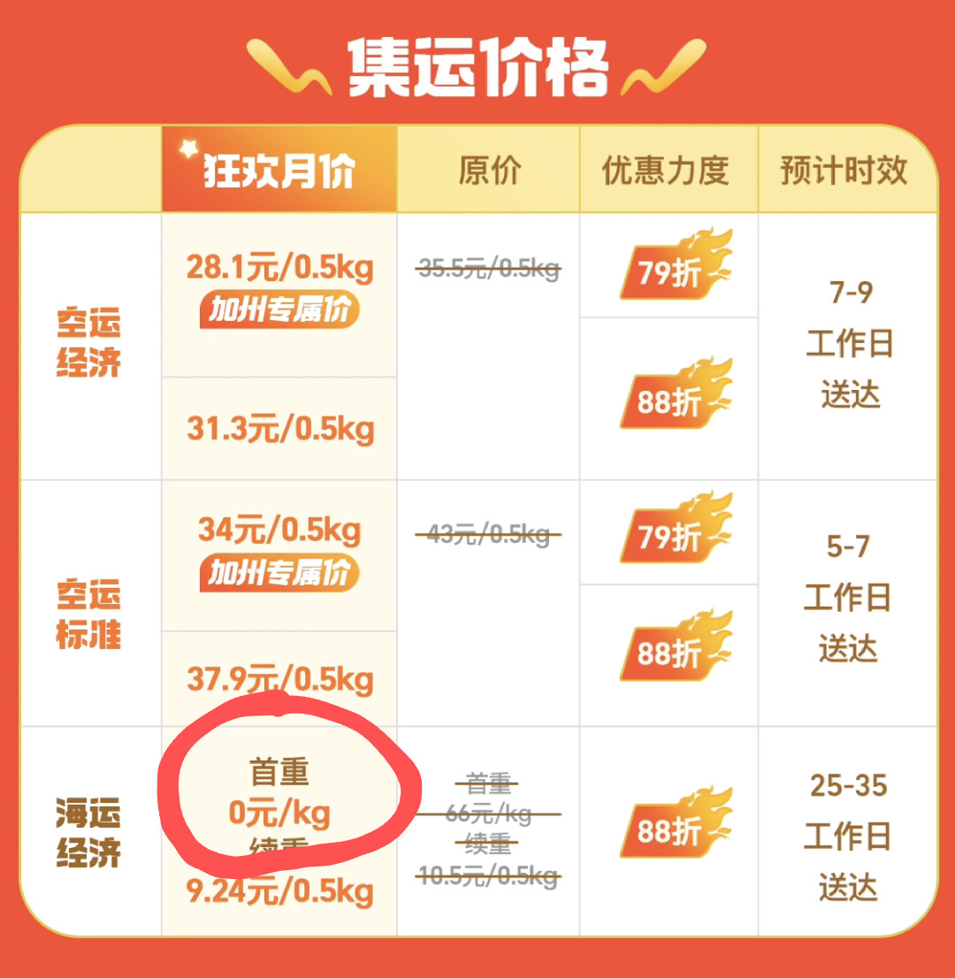 新用户的第一张空运应该还是无门槛。不过现在的限时活动海运免首重不是了。泥潭力量太强大了,发在泥潭第二天就卒了。现在门槛是67r,首重是66r,海运续重至少1kg。所以现在每天领的券不能零元购,可以理解为2kg 21r。