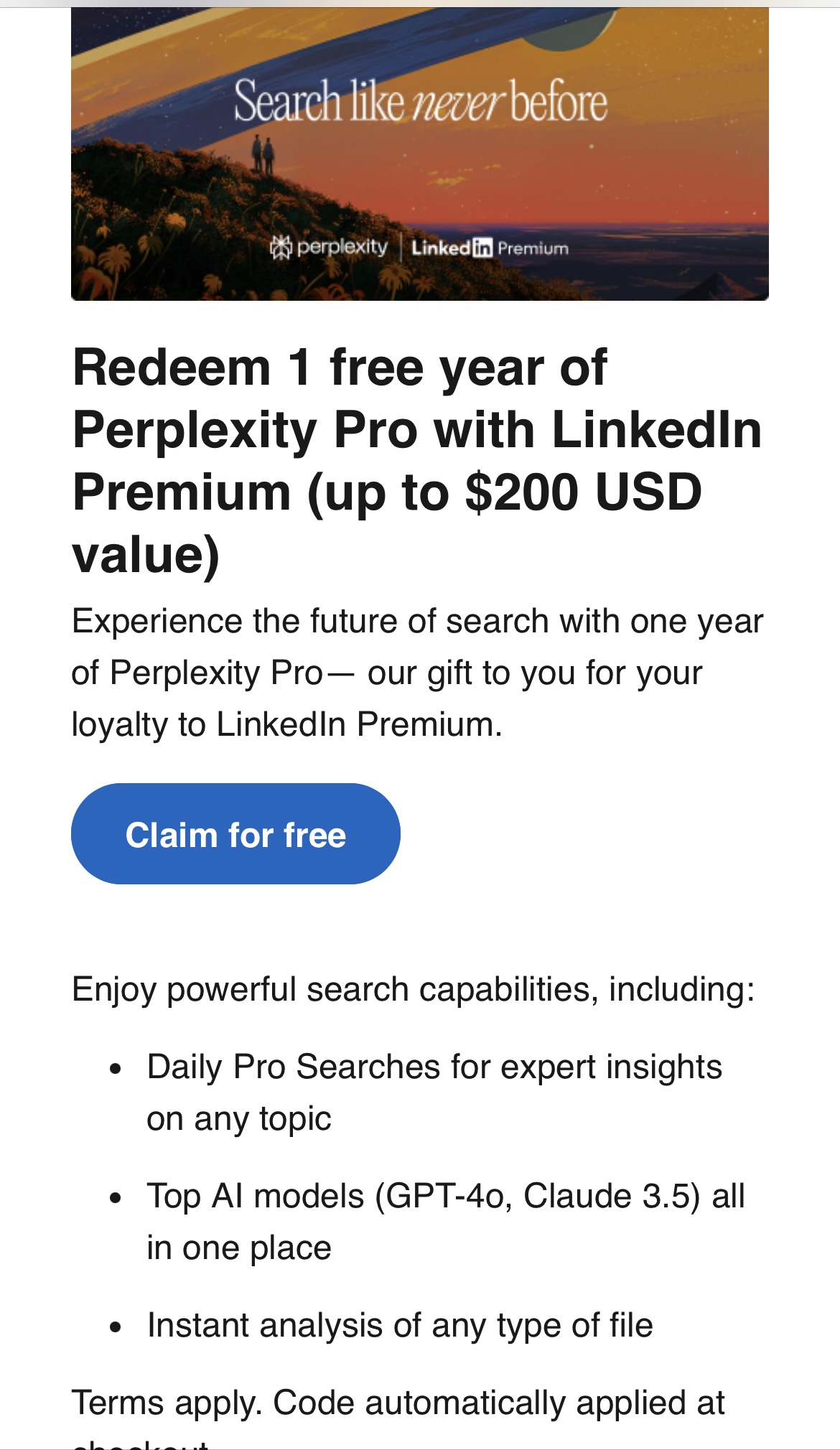 LinkedIn premium也送一年pro