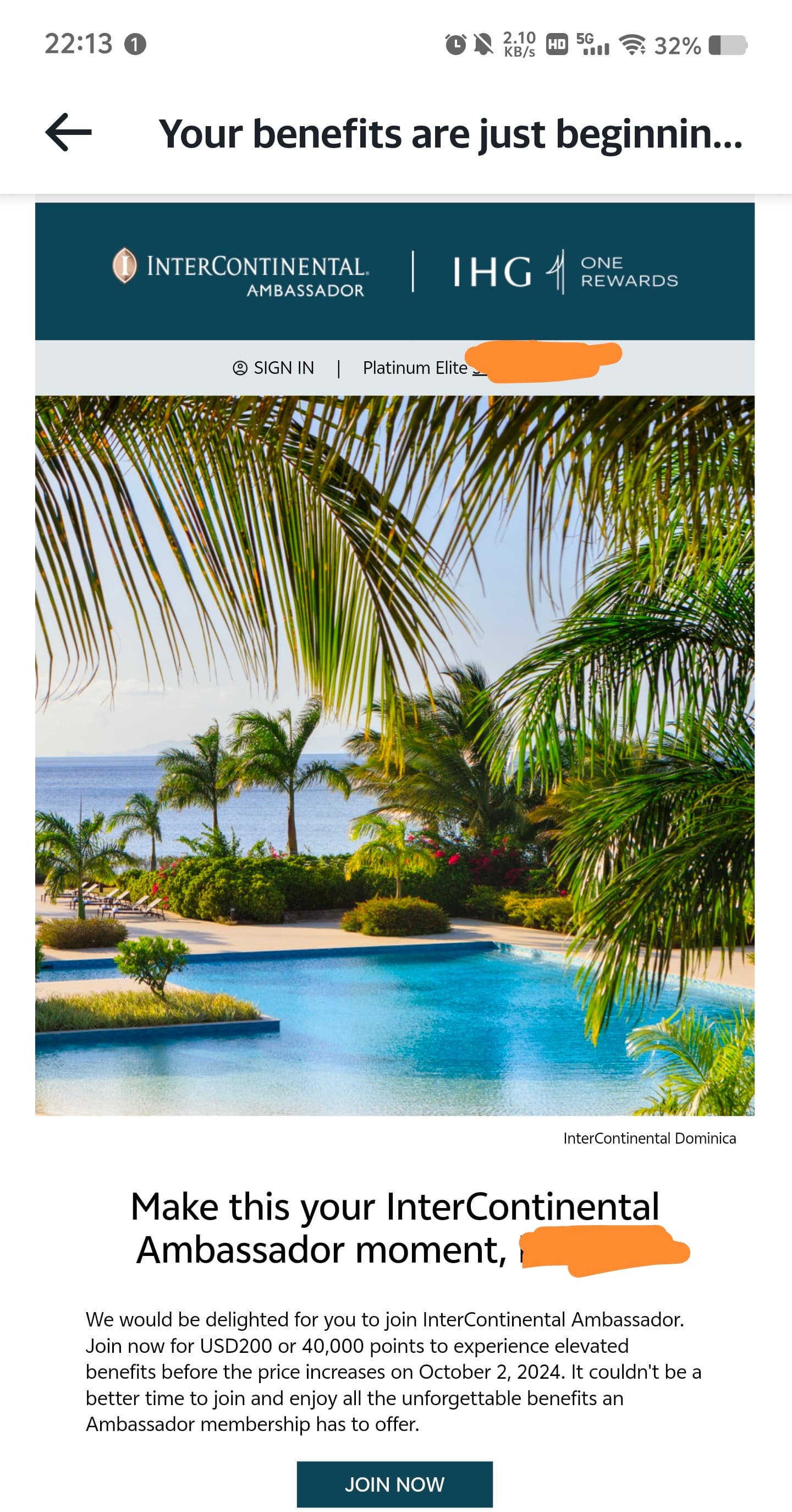 另,这个项目的甜点在哪儿?我能理解如果用好了weekend night能回本,除此之外在国内用还有什么甜点?感觉IHG抠抠搜搜的,即便是大使会员,即便在国内,也才送一份早餐!