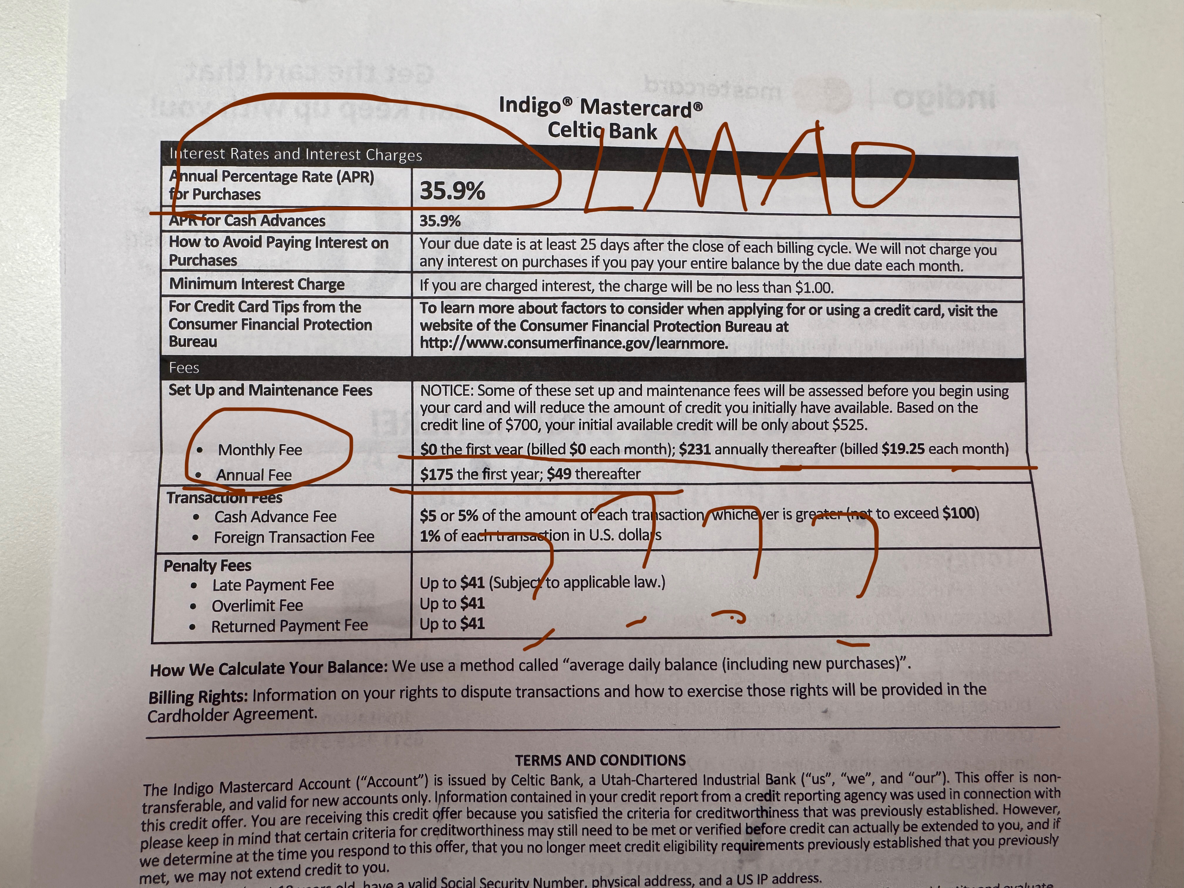 $0 Application fee and Processing fee but $175 Annul fee and $19.25 monthly fee!