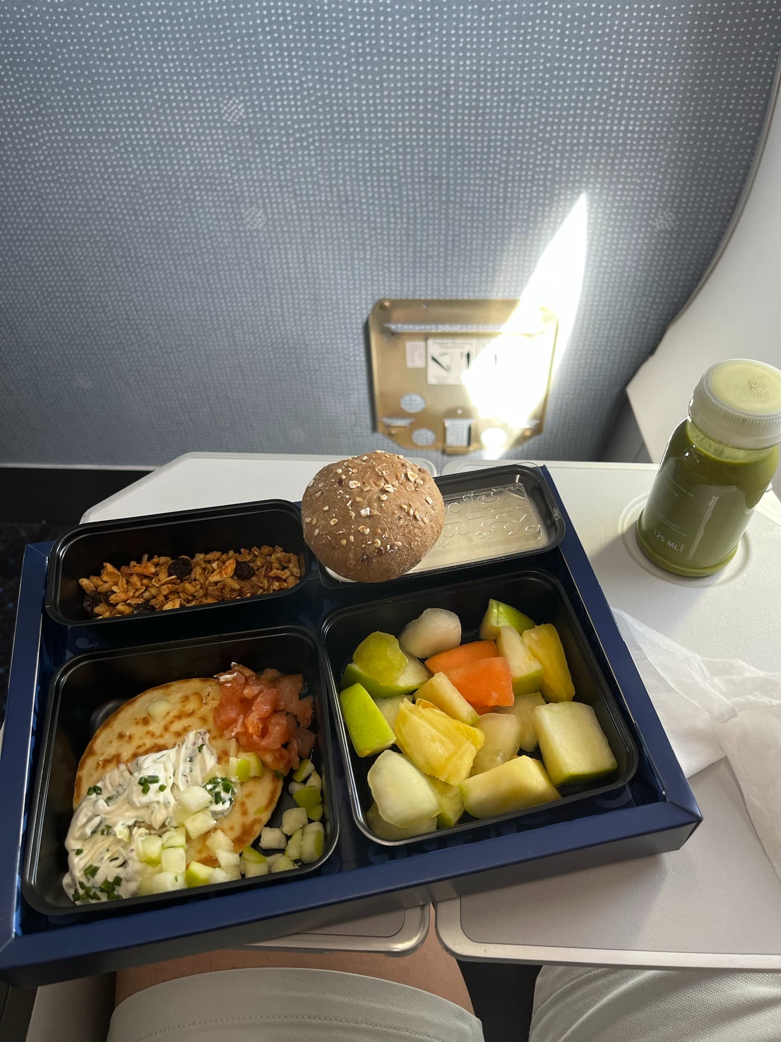 整个行程中飞行最大亮点就是KLM了,可能因为之前在xhs上看了太多负面评价,结果实际体验远超预期。比如这段2小时的飞机还发了制作精美的早饭,诚意满满。虽然依然是economy plus的座位吧,但是把中间座位隔开了,且当日前舱很空,体验很好!
