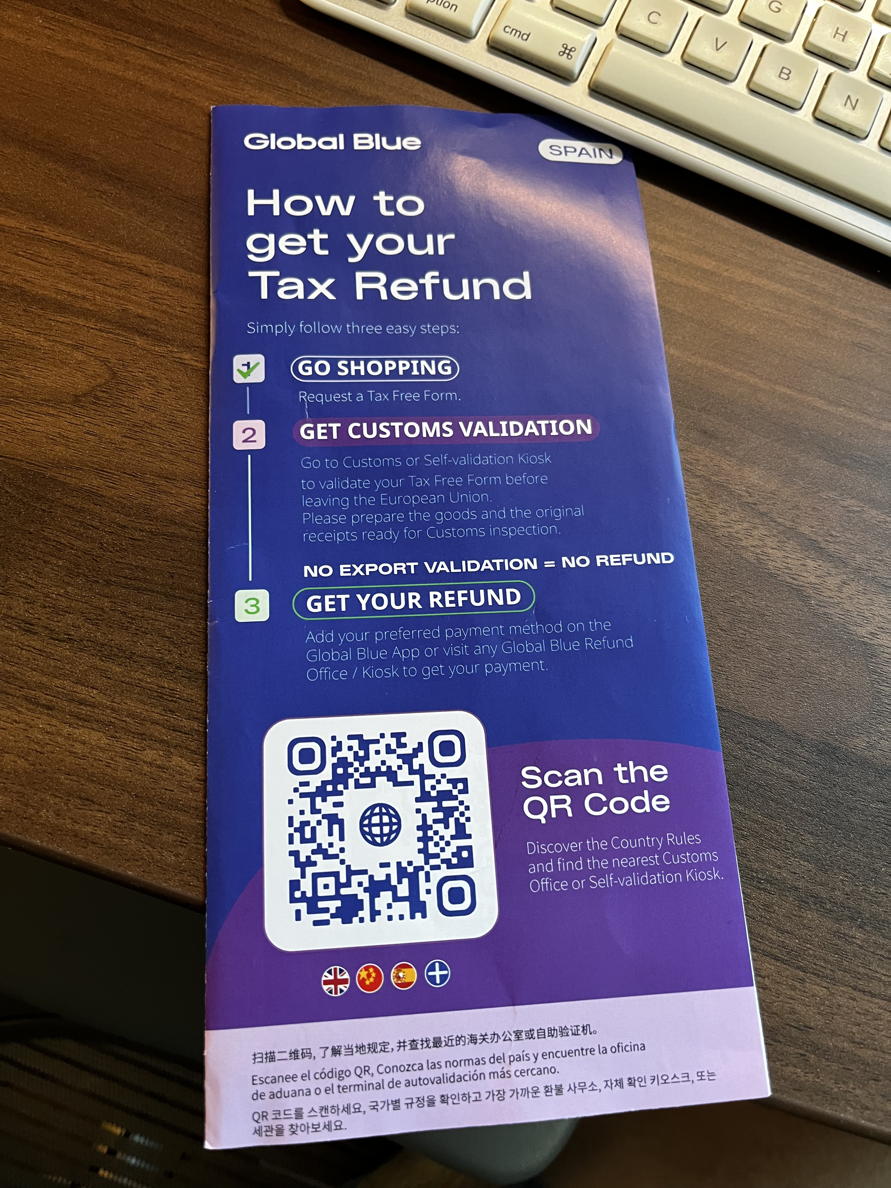 Global Blue这个软件很方便,录入购物信息之后生成条码,加上退款的信用卡,在机场validate一下即可。