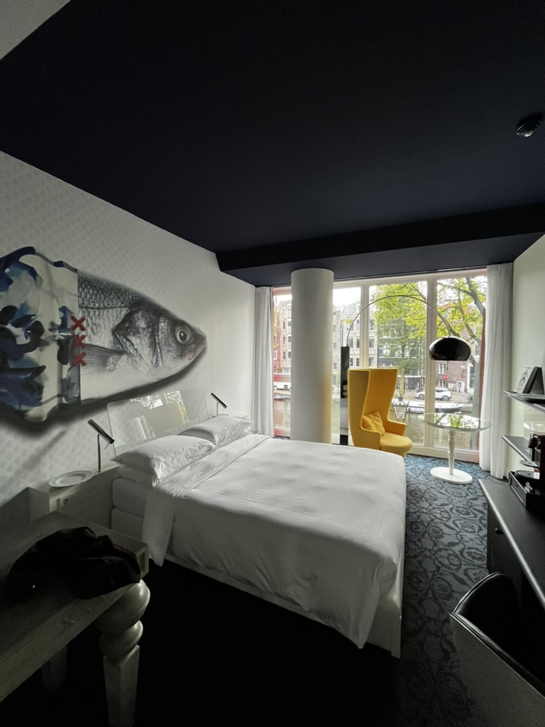 25K兑换一晚,算是我住过最有设计感的Andaz了(虽然新天地Andaz也很特别,但感觉就是味不对),不过500+Euro的现金价是在不值,环球客给升到了运河景大床房,面前就是阿姆斯特丹标志性的运河景观。