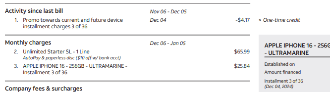 请问下大家,如果Oct 4激活,最近出的bill显示installment 3/36 (Dec 4th), 是不是就是表示等Jan 4th,在网90天后,就可以pay off 解锁,然后第二天转去Tmobile去K&S了呀?需要等1.4的账单么?