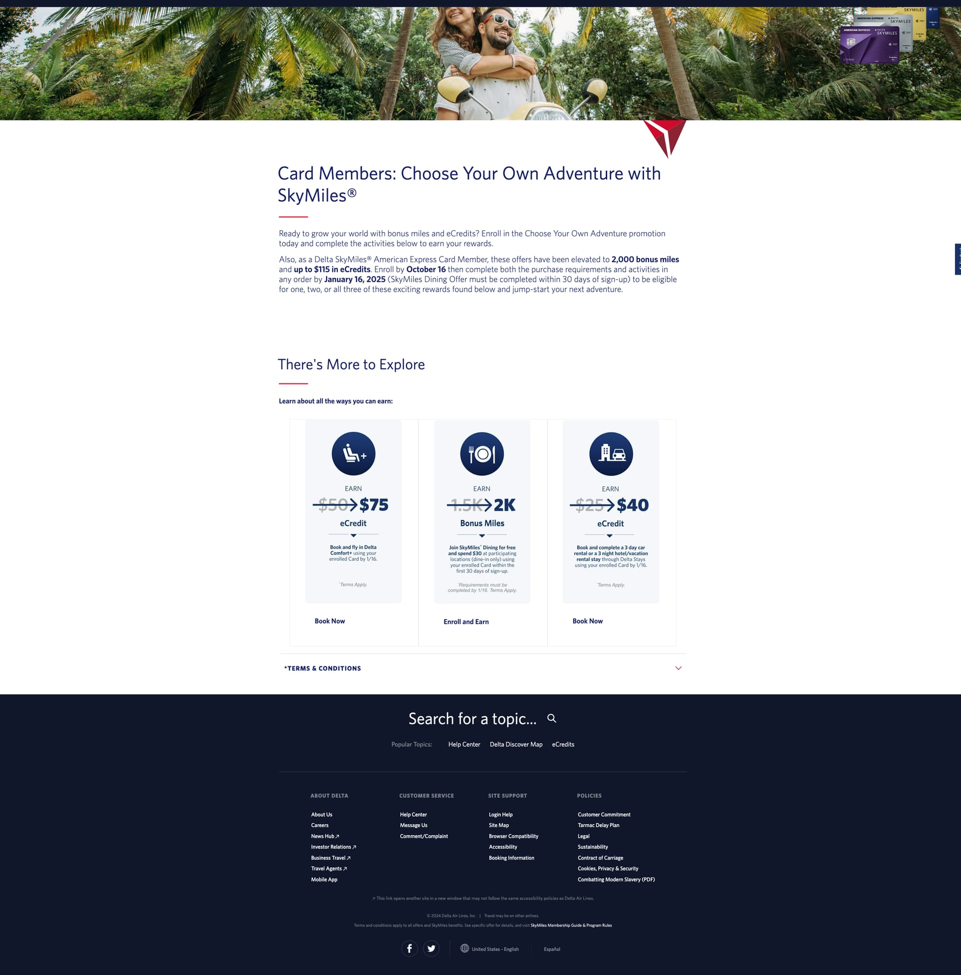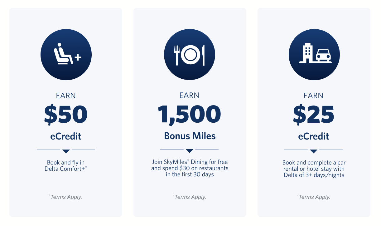 There’s a new way to grow your world as a SkyMiles® Member. Earn 1,500 bonus miles and up to $75 in eCredits after you enroll and complete any of the below activities.