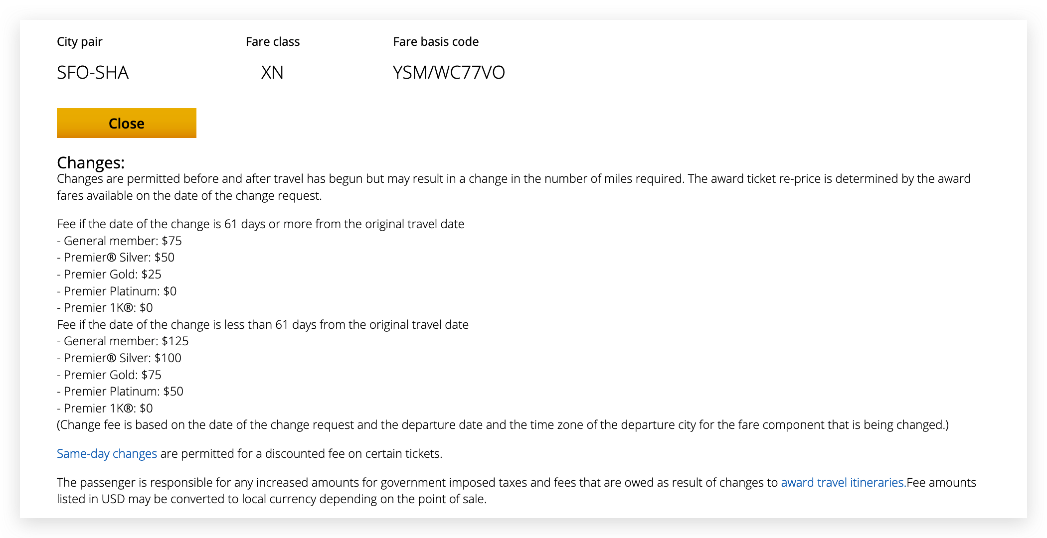 2016年10月6日开始:改签或者取消61天之外的里程票:75美元,改签或者取消61天之内的里程票:125美元。UA 1K会员各种退改签依然全免费,其他会员也有相应的优惠。只不过金银卡会员的优惠被缩减了。