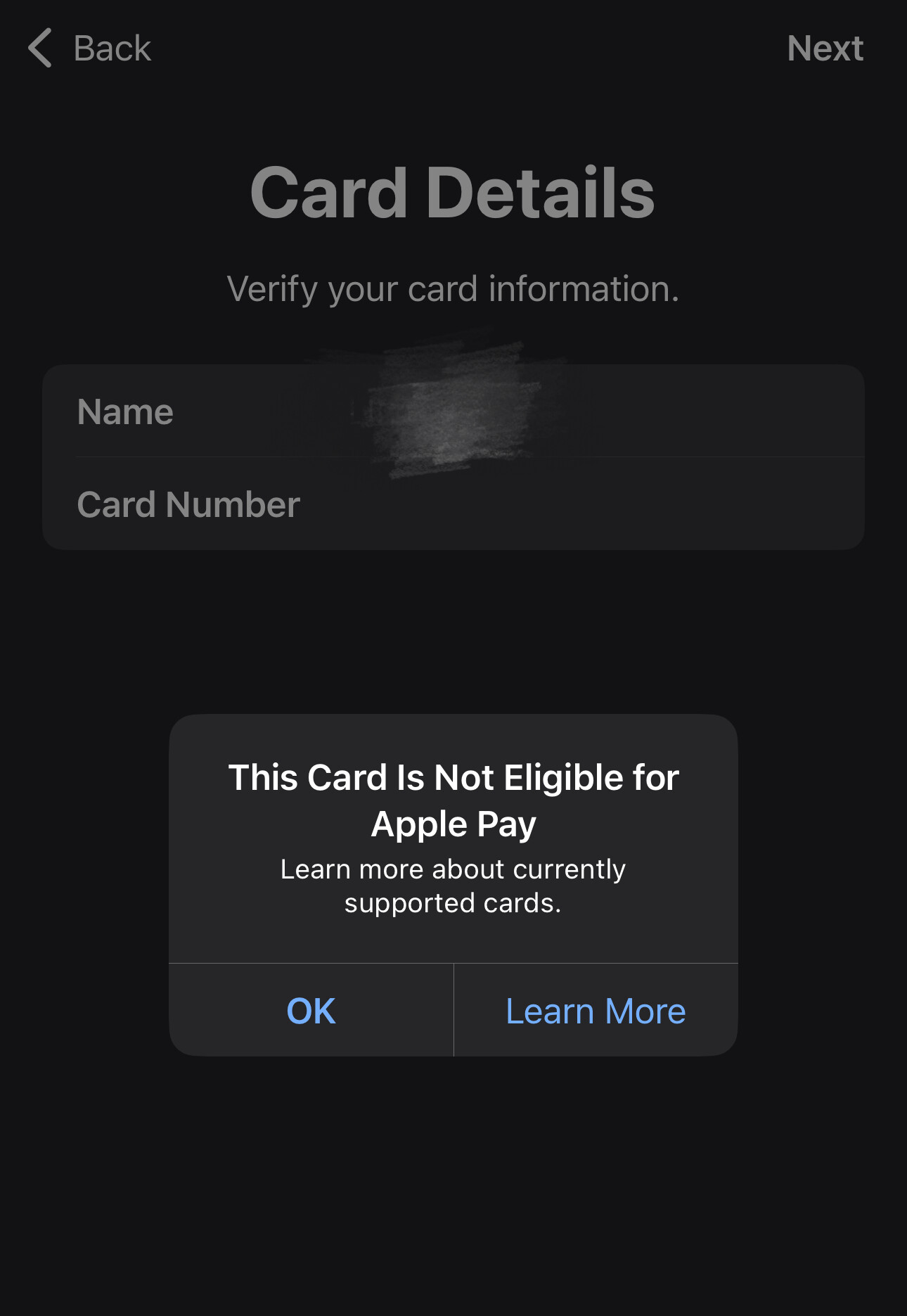 这种提示就是卡不支持apple pay