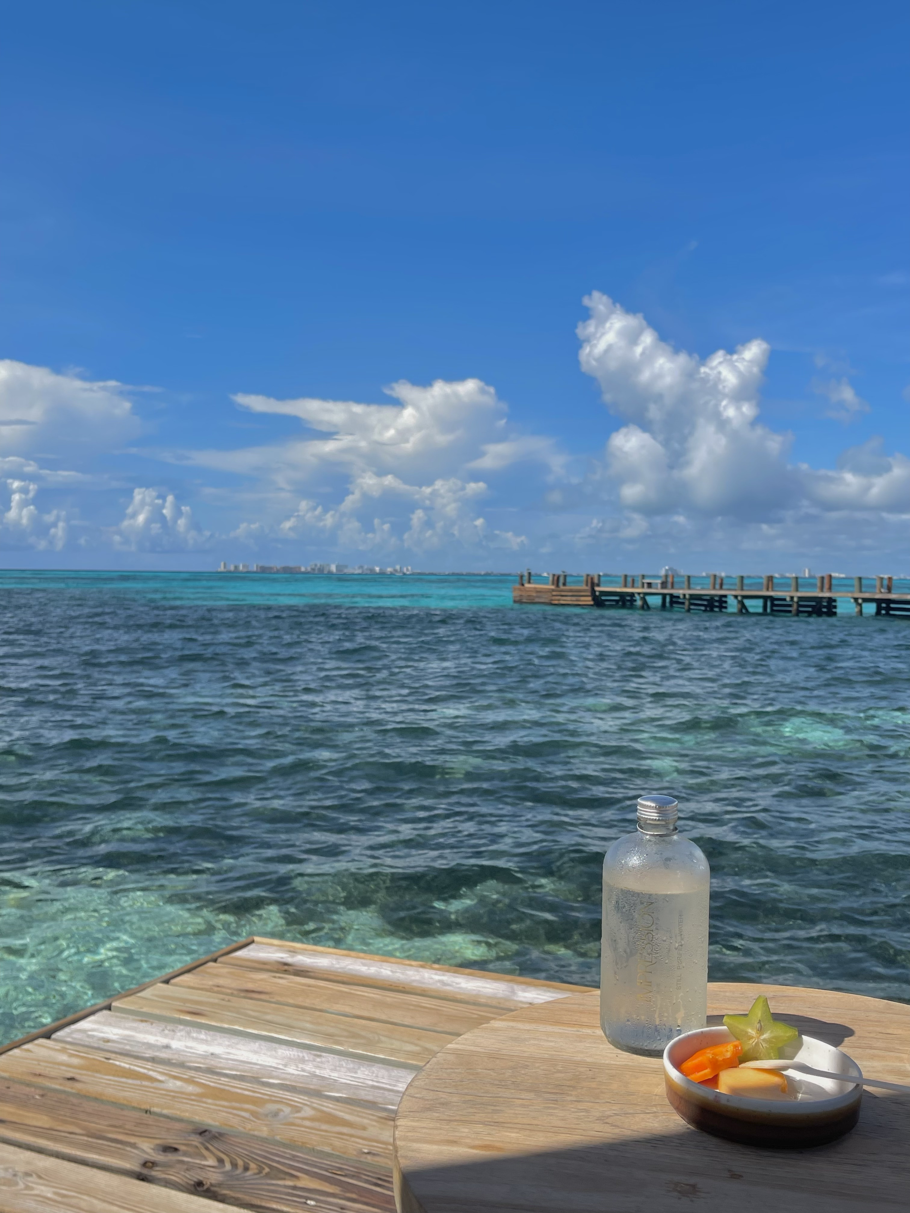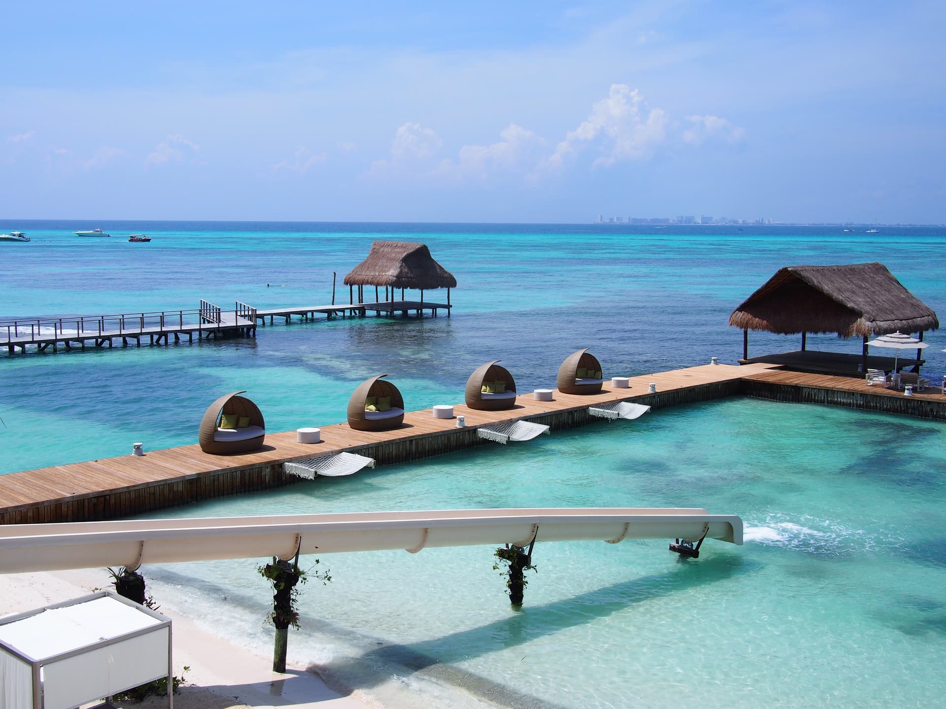 上了游艇之后刚开离坎昆码头没多久就能感受到这片海的美了,海面上也比较平静,船开的也不快,吹吹海风大约30-40分钟后就到了女人岛上的酒店自己的码头,下船之后就有管家带着毛巾和welcome drink等着,管家会简单介绍一下整个酒店,包括n个pool和n个餐厅,然后带到房间简单介绍一下,checkin的部分在坎昆的码头就已经弄完了