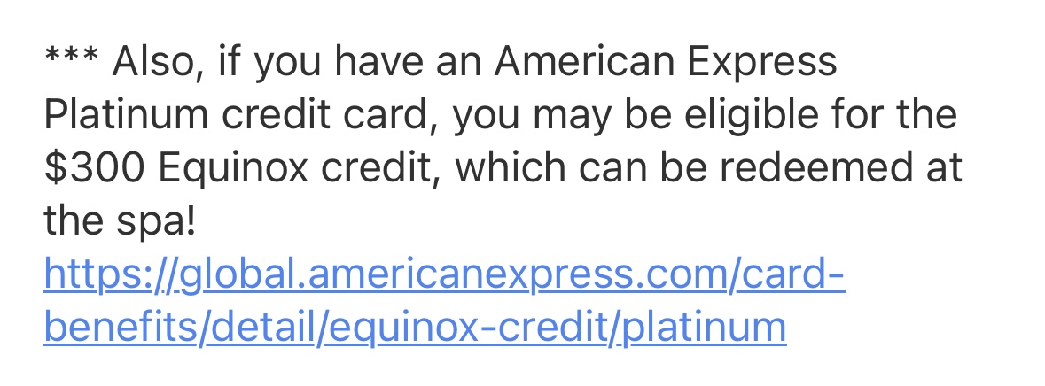 今天刚做完110分钟的按摩,回到家之后就收到在同一个equinox的一个美容师的促销邮件,居然在结尾还提到了可以用amex的300刀报销做美容spa…这么下去感觉明年这个羊毛不一定可以薅了…