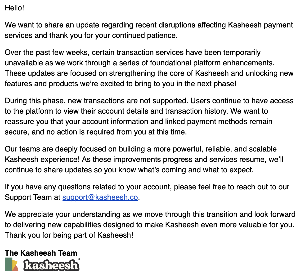 Effective 6/25/2025, we will no longer support federal IRS tax payments through Kasheesh.