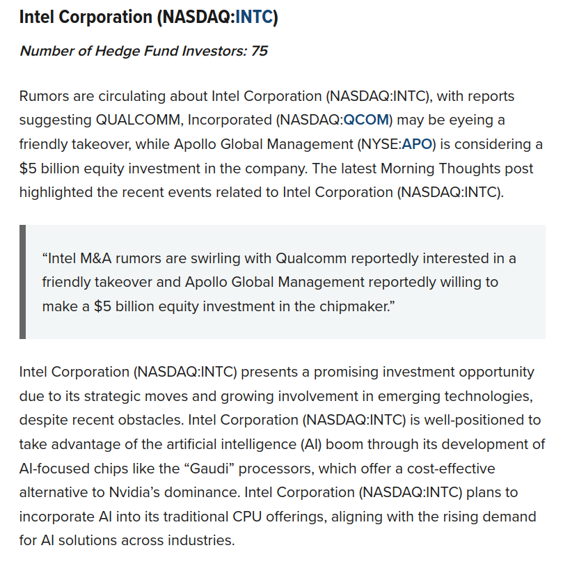 我去年25买的,四十出头感觉不好卖了。看着它涨到五十,还心想自己是不是卖飞了。现在看真是做了正确决定。intc的book value大概在20,21这样子。但是它的模式有问题,不赚钱,在亏钱。如果之后IFS也做不好的话,还要wirte off大量资产,不确定性太大