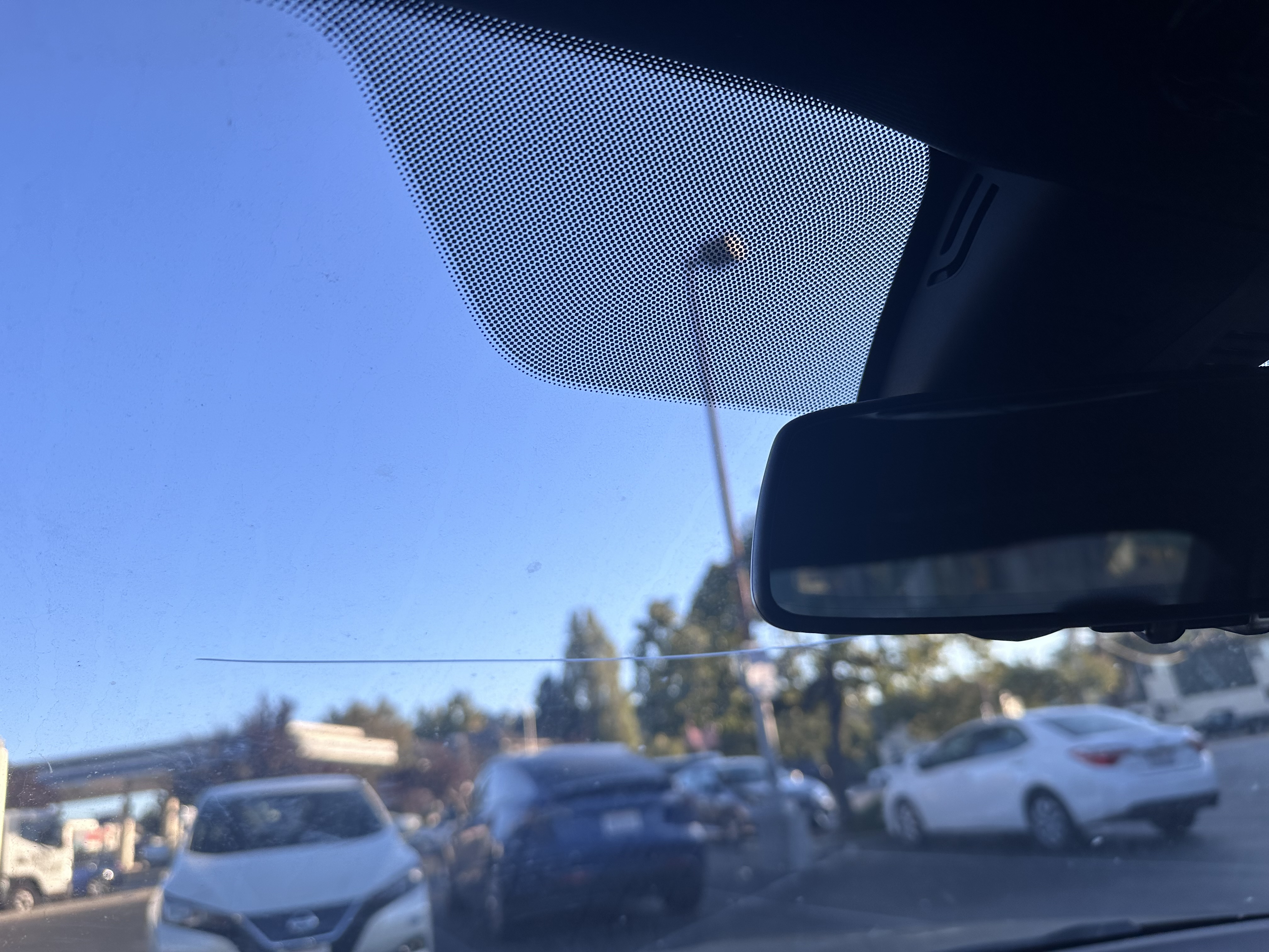 车貌似被石头或者是什么的砸了个小坑,等我发现的时候已经是一条大裂痕了,大约一半车窗长度