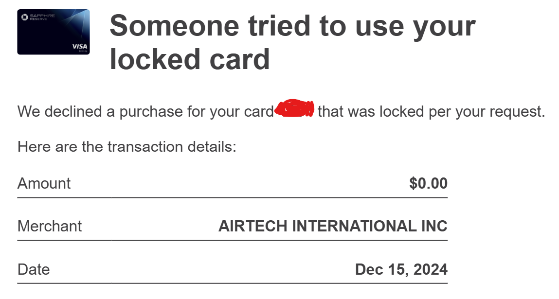今天突然又被刷两笔800+的,卡锁了没成功。WF也block了我的卡,给我打电话。没想到一个月前测活失败了竟然还会再刷大额,还是尽快换卡吧。