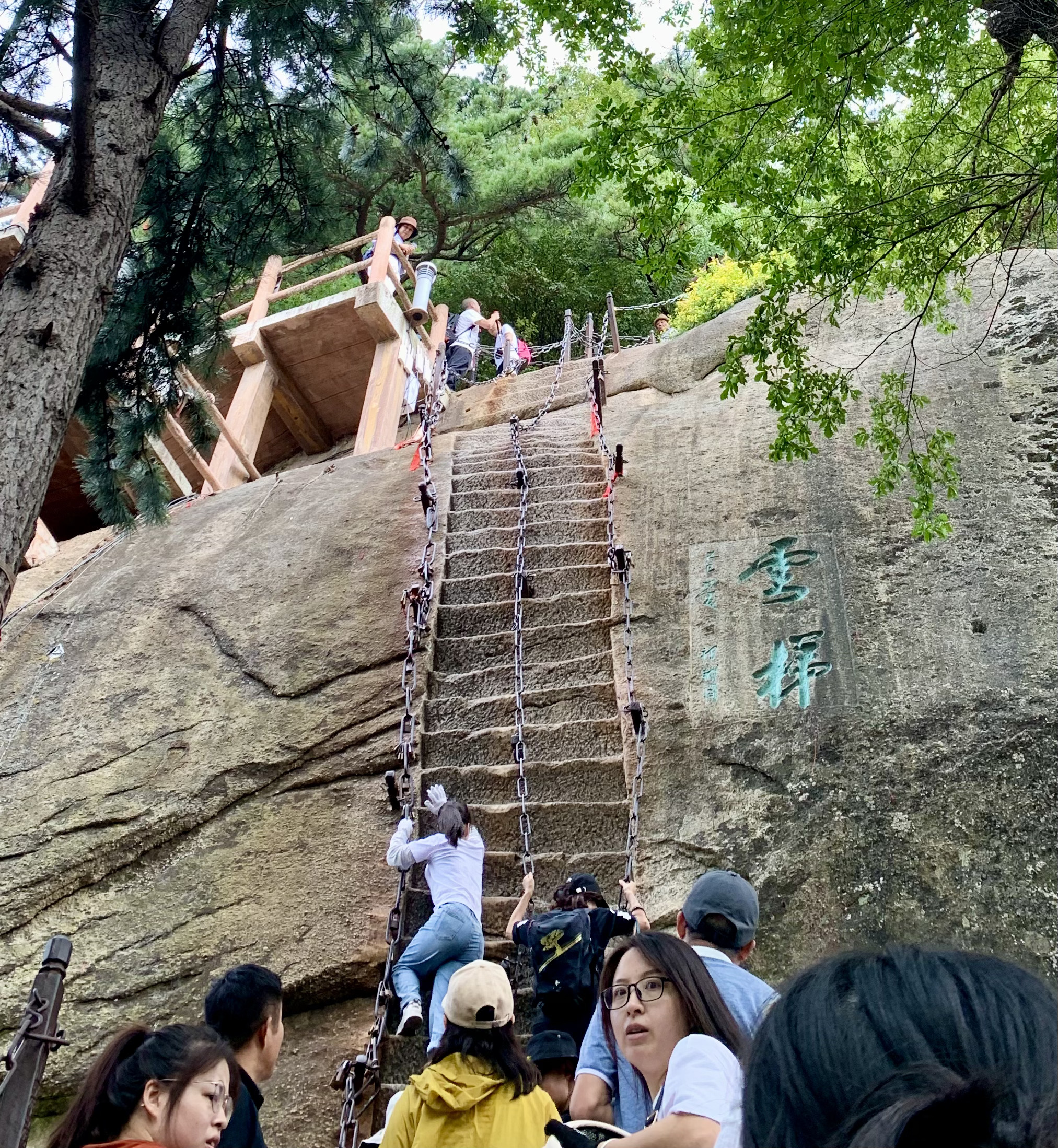 一个半小时左右到了东峰,鹞子翻身有很多人排队,爬需要带着harness和铁链,保护的很好,但是速度很慢。以前爬的时候根本没有人管和排队。因为太耽误时间,就放弃了
