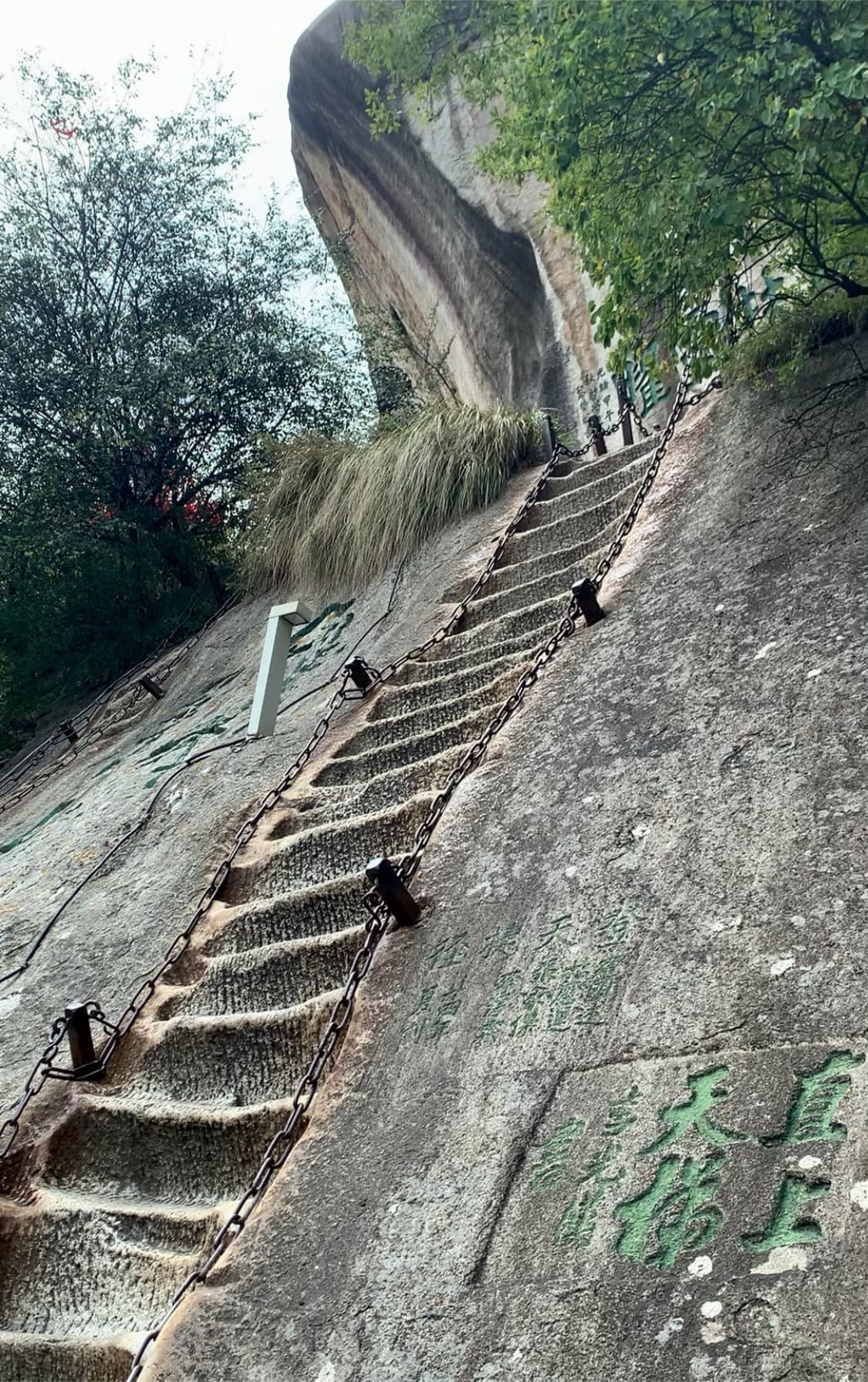 过了北峰第一个很快就遇到第一个天梯。以前天梯是必须爬,现在华山修的都很好,旁边都有步道替代。