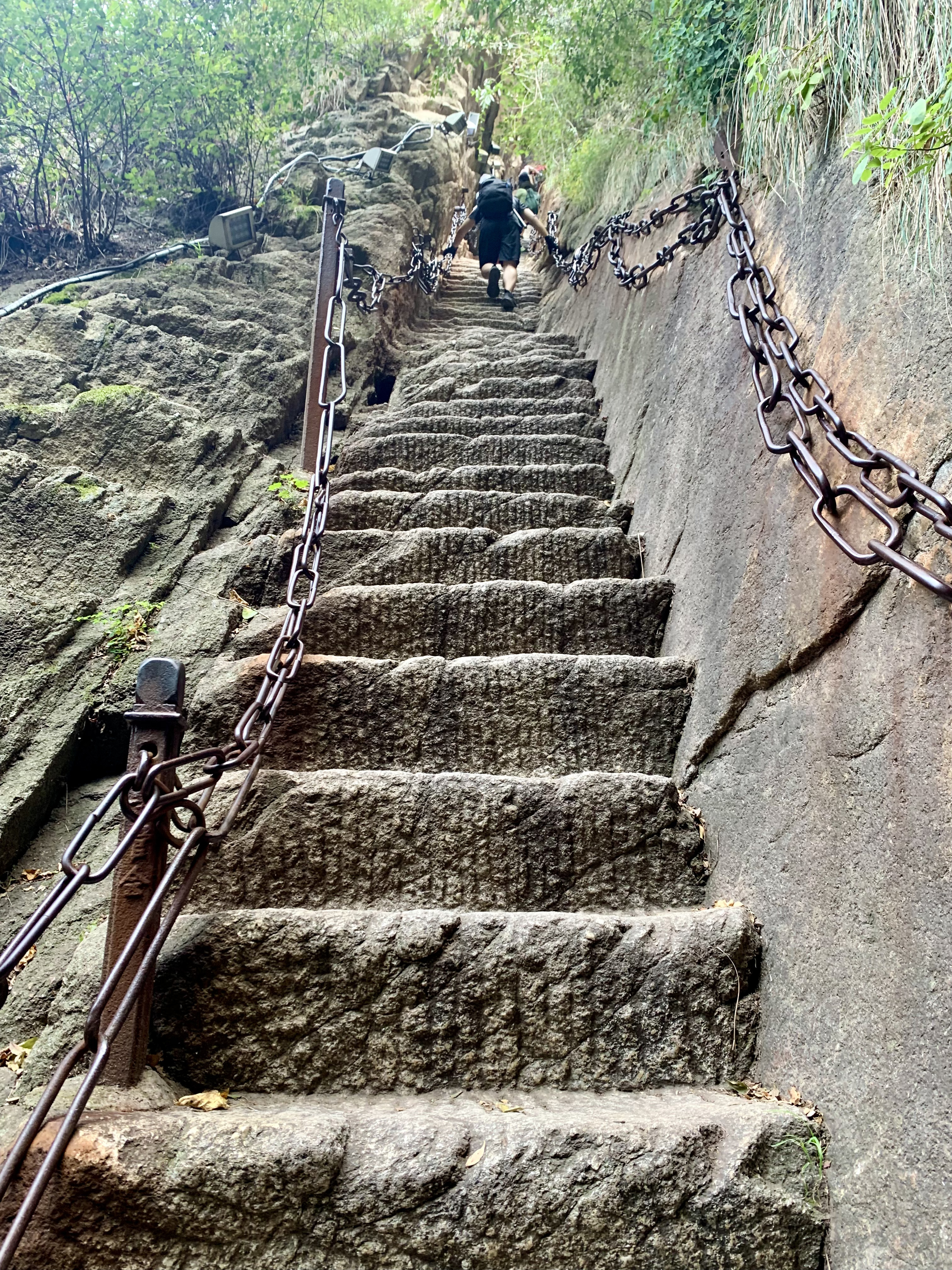 坡度还是挺陡,台阶很窄,需要侧着脚踩。