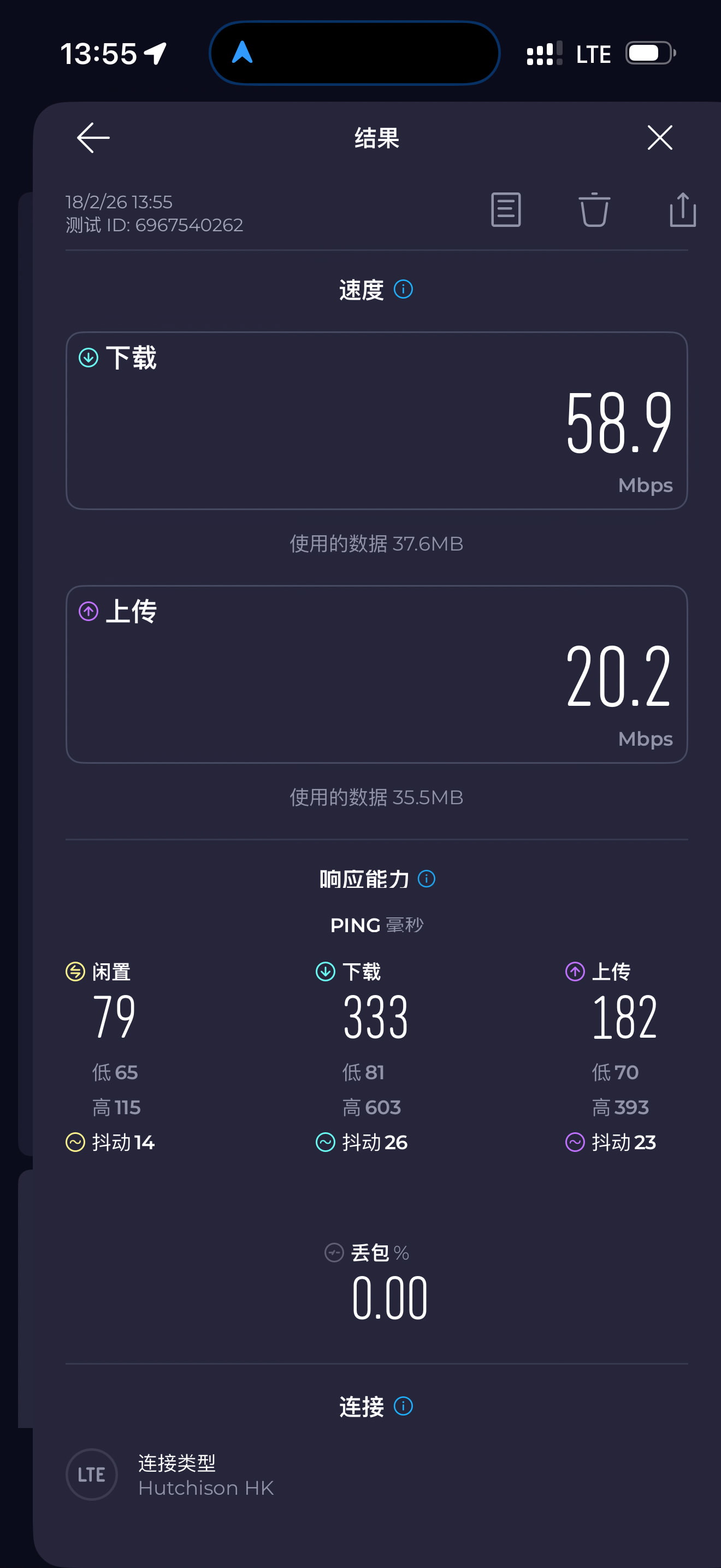 3HK,今天测速了一下,LTE 信号下,速度是还可以,但是稳定性就怎么就都差点 ctm 的意思