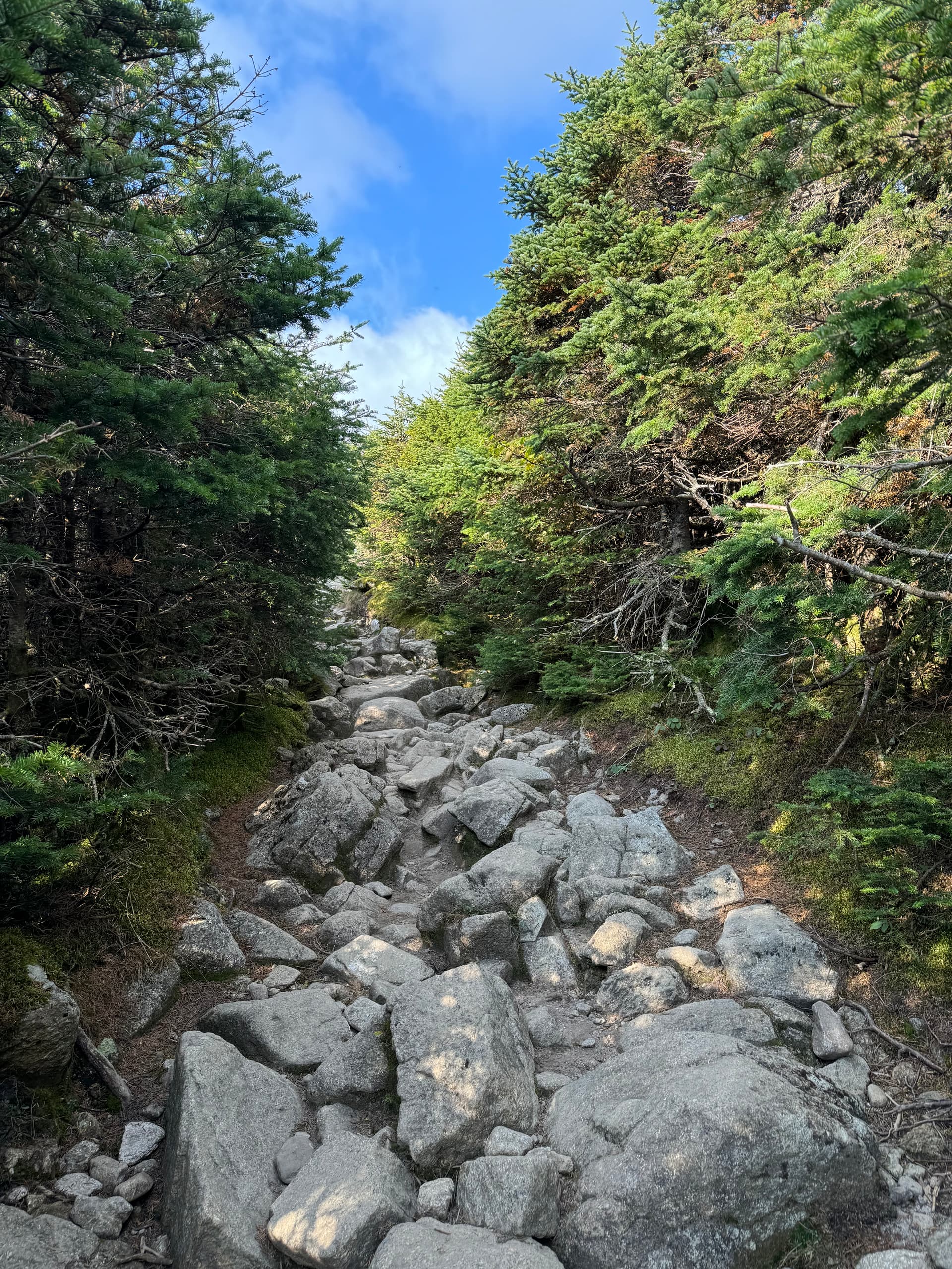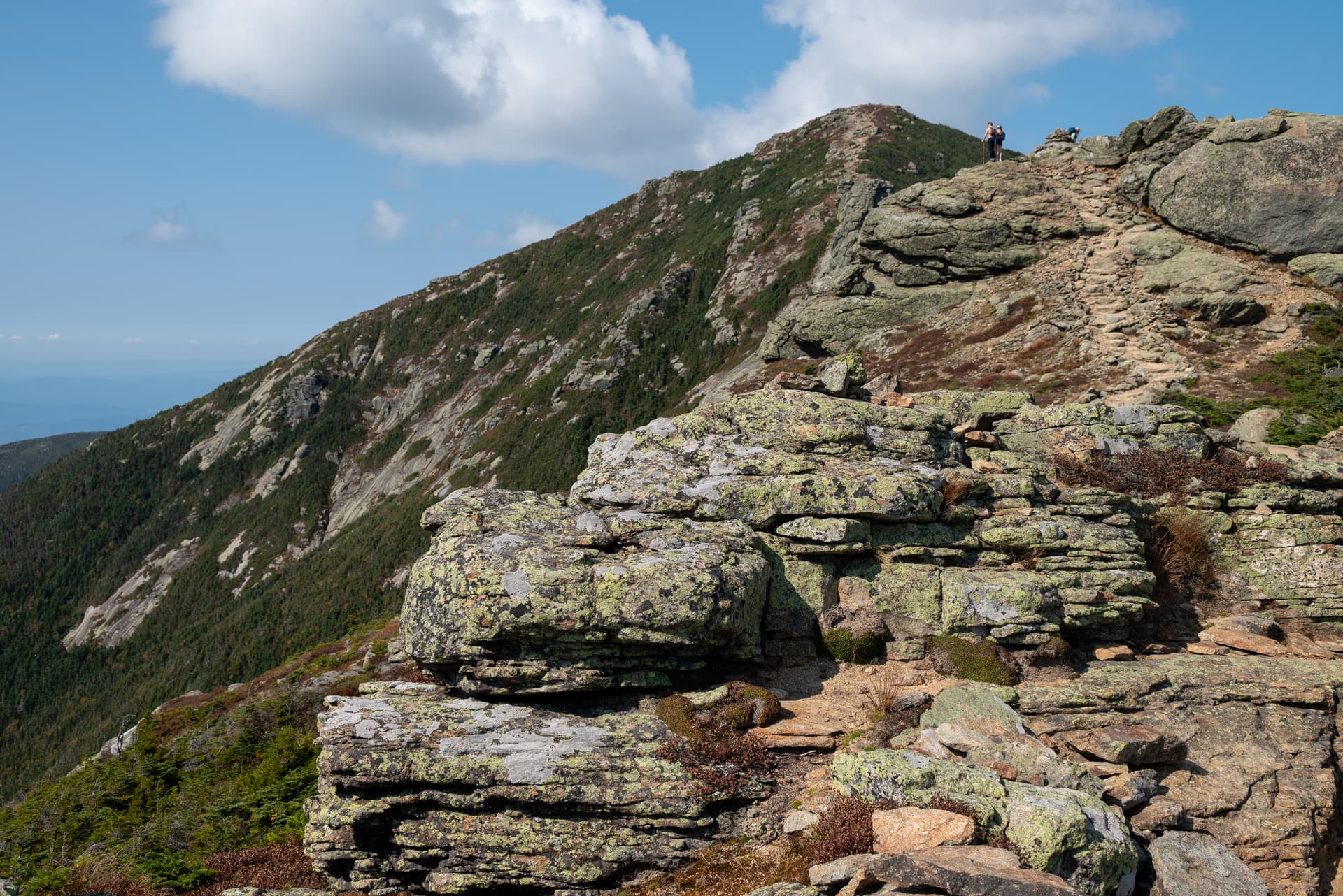 沿着瀑布和山谷缓(tong)慢(ku)地往上爬升到4725ft的山脊线,再从南往北一路走过两座NH48的山峰(Mount Lincoln, Lafayette),上山的过程有多痛苦,山脊线上的风景就有多美好。