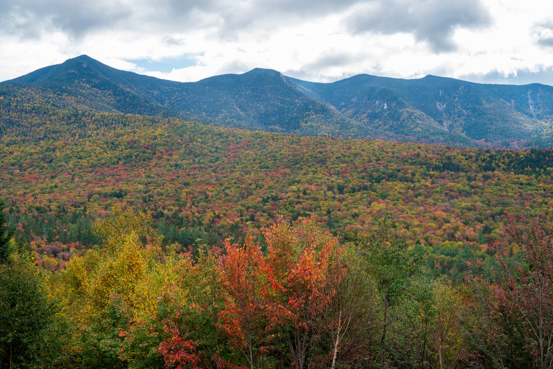 经典观景点之Hancock Overlook发夹弯,在这里能远眺到白山南部的山脉系统,三座山峰就是Mount Osceola及其姐妹峰,顺带一提,Mount Osceola被誉为是白山性价比最高的入门4000 footer,有兴趣的话也值得尝试一下。