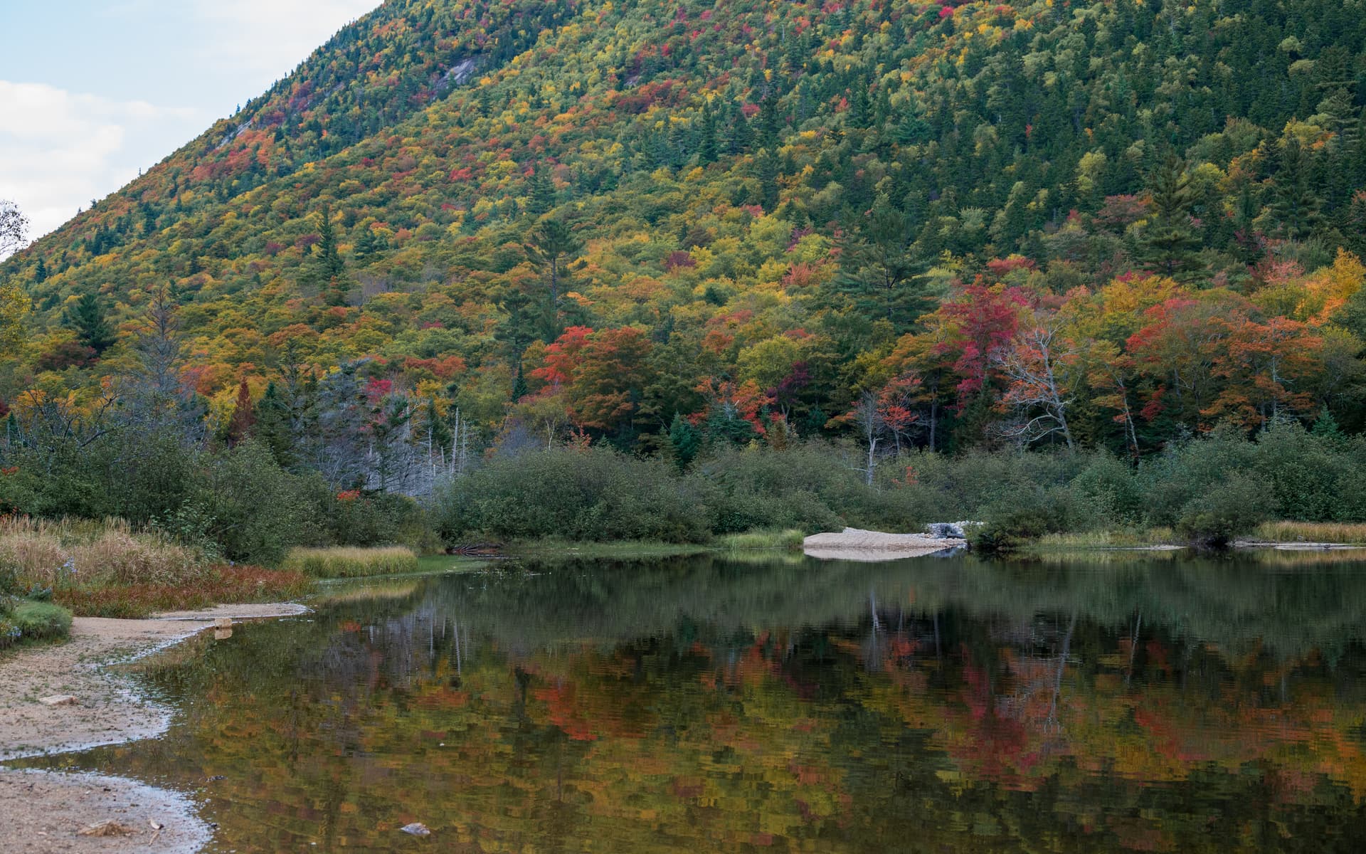 尽管Smokymountains和新英格兰各州的秋色预报显示现在白山(white moutains)区域的秋天才刚刚开始,但是因为树种和气候的多样性,其实秋天已经丰富多彩地展开了。