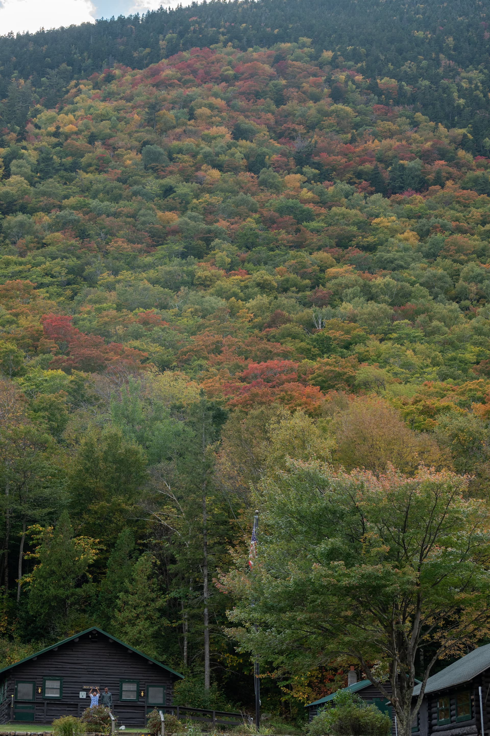 US-302自南向北穿越Crawford Notch,有一条著名的Mount Willard Trail可以上到悬崖上俯瞰整个峡谷的景色,因为这次计划的是纯road trip所以没有再去。但路过AMC附近的trailhead的时候发现已经停满了车,估计trail上人也挺多的。我们只在Wiley Dam House这里稍作停留,在峡谷底部仰望整个山脉还是挺享受的。