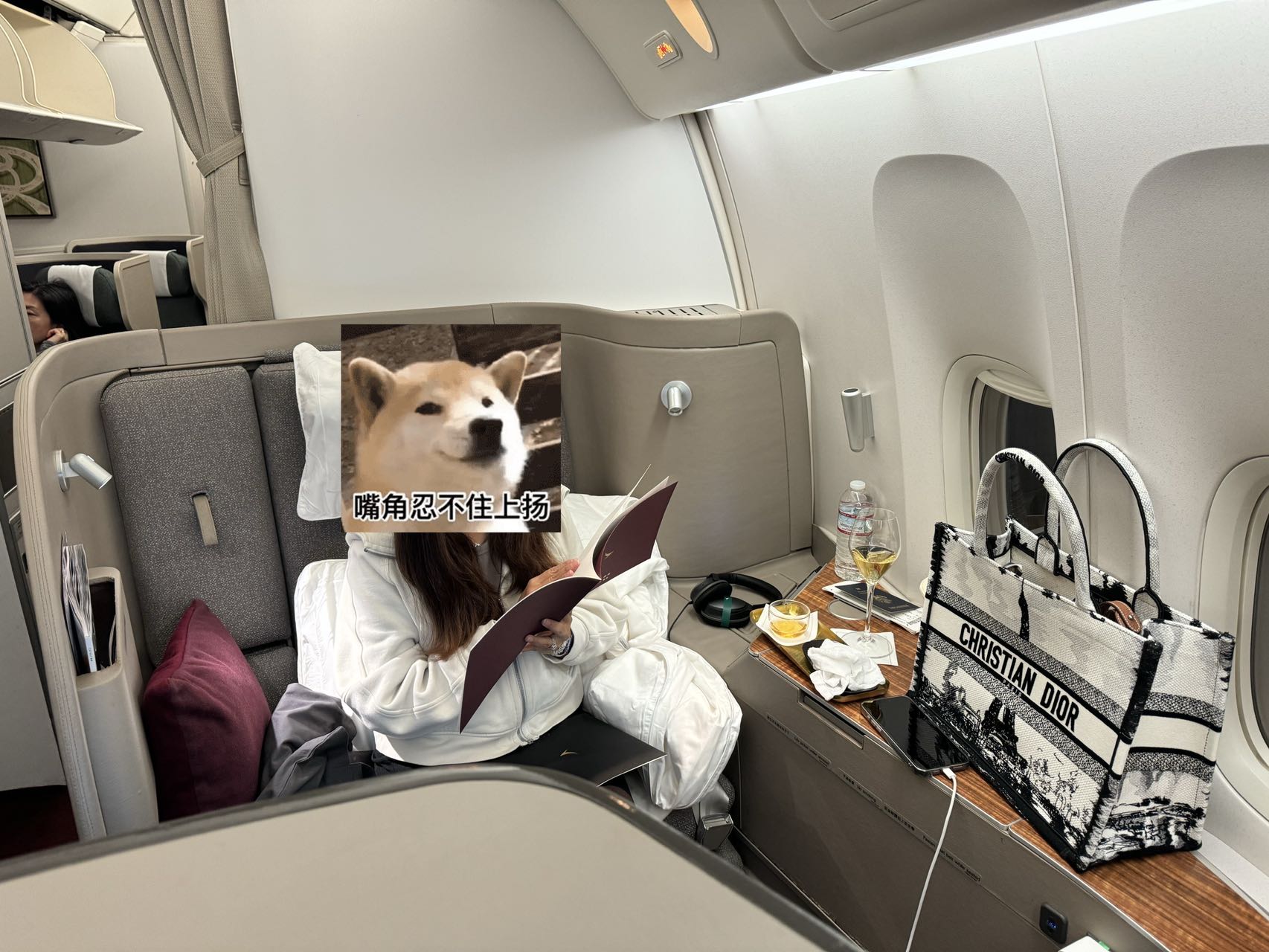 登机咯,惯例的国泰头等照片少不了,菜单+krug (我的1A有菜单,ld的2A没有菜单,最后发现我的菜单原来是上一趟航班忘记收走的
