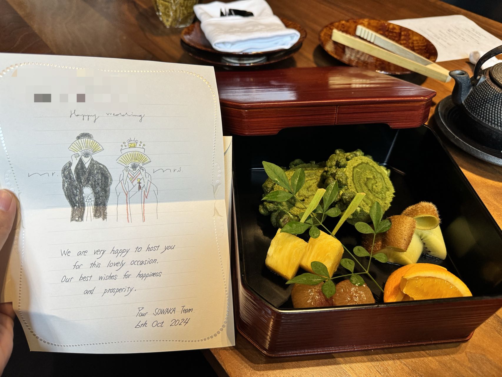 快乐的时光总是短暂的!马上就要告别sowaka了。然而让我意向不到的是,居然吃早饭的时候,sowaka再次送上蜜月大礼。还带上温馨的小贺卡,呜呜呜吹爆sowaka,暴打roku kyoto。顺带一提,roku最后送的礼物也就是checkin的时候给的小饼干,不好吃TvT。这一比较,感受到了两家的差距。