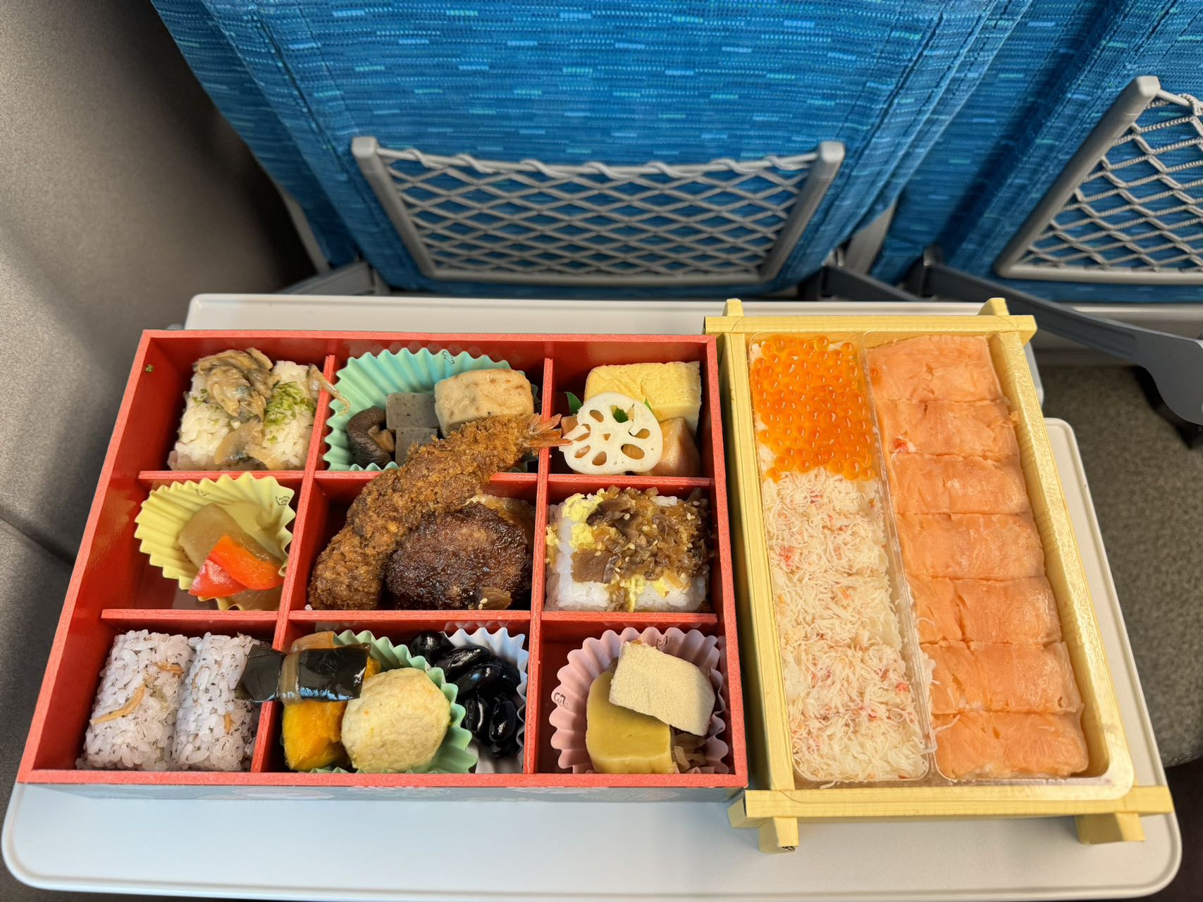 坐新干线怎么能不买火车便当呢!左边的还不错,右边的就很一般般了