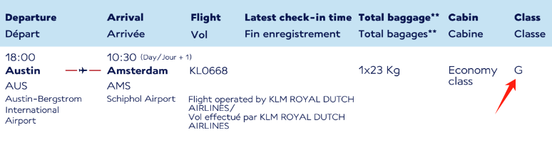 G 是蓝翔的lowest economy,对应的biz fare class是O(Revenue lowest biz/ standard biz award )