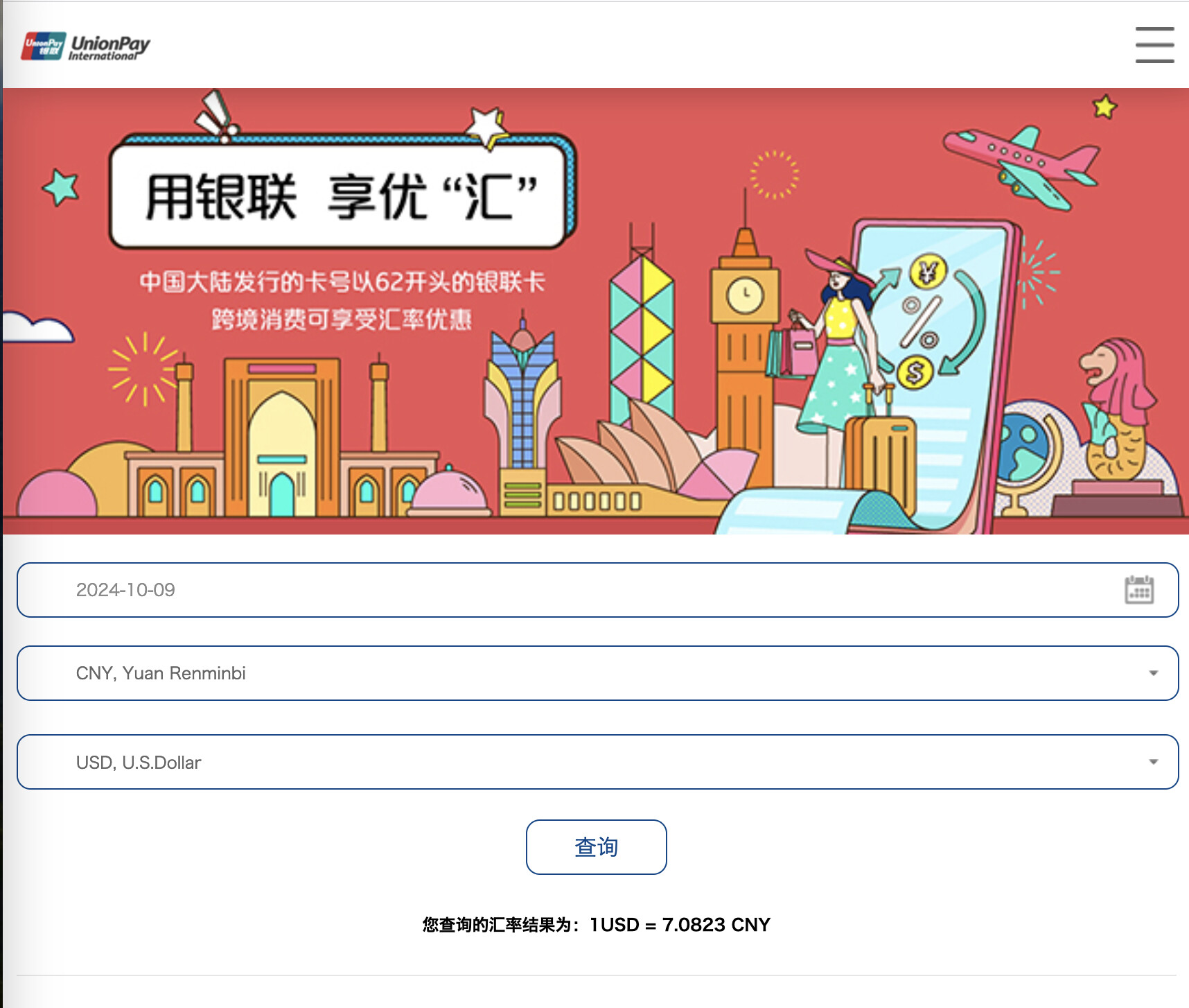 同一个日期的银联外币交易人民币入账汇率7.0823,远不如Visa啊。多了大概0.2%。