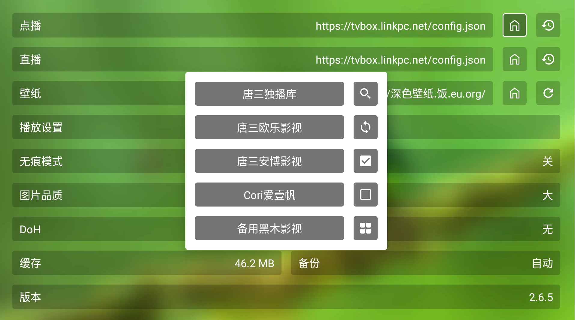 如果不满意接口自带的直播源,还能自行单独设置直播源。