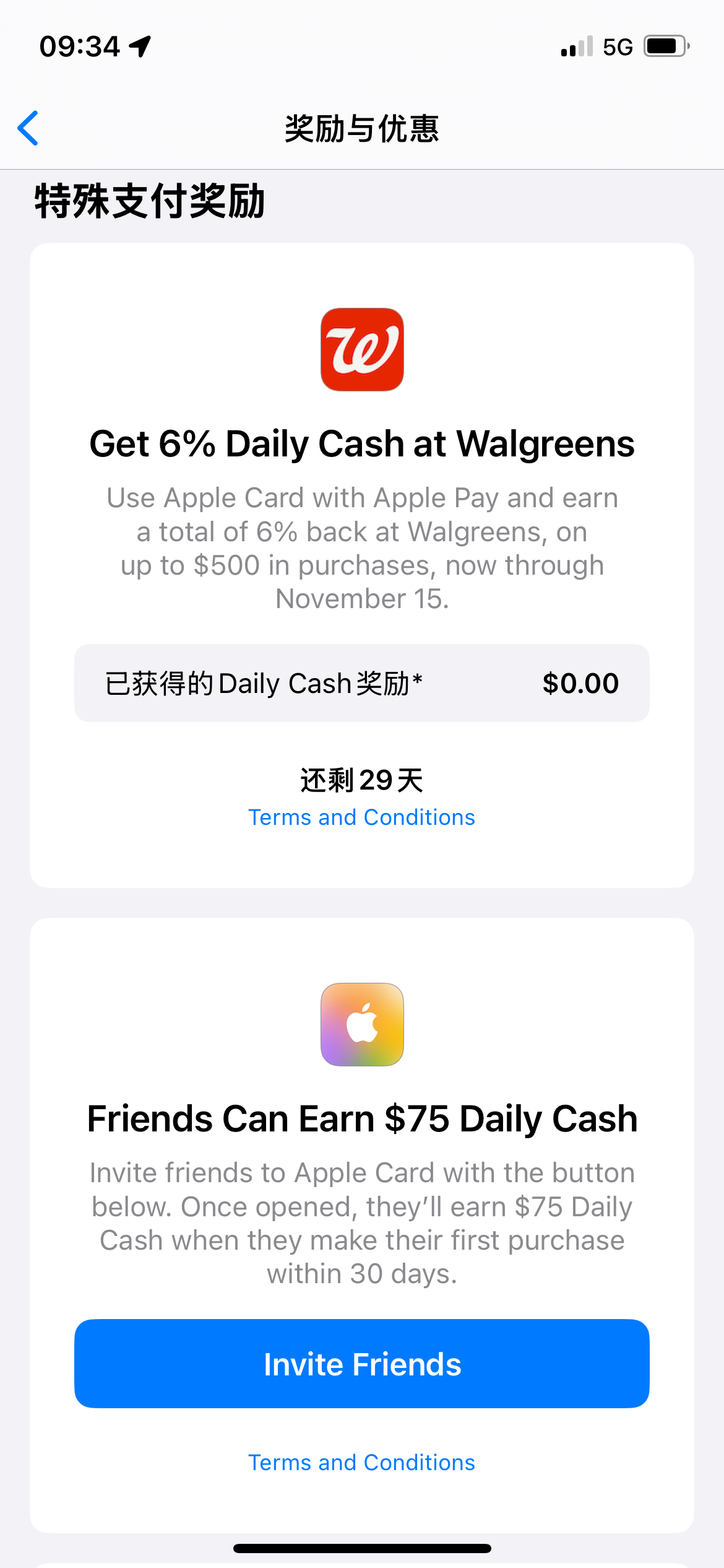 Walgreens / Duane Reade 6% Daily Cash: Valid 10/15/24 through 11/15/24 (“Offer Period”). All Existing Apple Card holders will earn a total of 6% Daily Cash on up to $500 in total Qualifying Purchases made at Walgreens and Duane Reade using your Apple Card with Apple Pay. The 6% earn rate includes the 3% standard earn on Walgreens or Duane Reade purchases plus an additional 3% bonus earn. The maximum total Daily Cash you can earn through this offer is $30 (which is $15 in Bonus Daily Cash). Qualifying Purchases at Walgreens or Duane Reade include purchases made within the U.S. by existing Apple Card holders using Apple Card with Apple Pay at Walgreens or Duane Reade stores, through the Walgreens app, or through Walgreens.com. Excluded from Qualifying Purchases are 1.) purchases made at Sprint Express and independent health service providers, including Walgreens Optical and Walgreens Hearing, or 2.) for orders made on third-party delivery apps. Existing Apple Card holders are defined as current Owners, Co-Owners, Participants or Apple Card holders who merge Apple Card accounts during Offer Period. Total qualifying spend is determined independently for Existing Apple Card holders within the same Apple Card Family. This means that each Existing Apple Card holder within the same Apple Card Family is eligible to earn a total of 6% back on, up to $30 total Daily Cash, based on their own Qualifying Purchases at Walgreens using their Apple Card with Apple Pay, subject to $500 total qualifying spend. After meeting the $500 maximum spend amount, all purchases made at Walgreens or Duane Reade will earn the Daily Cash rate noted in your Apple Card Customer Agreement. You can choose to direct Daily Cash to a Savings account or to an Apple Cash card. If you do not have either set up to receive your Daily Cash, it can be applied as statement credit. Apple Card and Savings accounts are issued or provided by Goldman Sachs Bank USA, Salt Lake City Branch, Member FDIC. Actual posting times vary by merchant. Daily Cash is subject to exclusions, and additional details apply. See the Apple Card Customer Agreement for more information. If we determine that you have engaged in or plan to engage in abuse or gaming in connection with this offer, you will not be eligible for this offer.