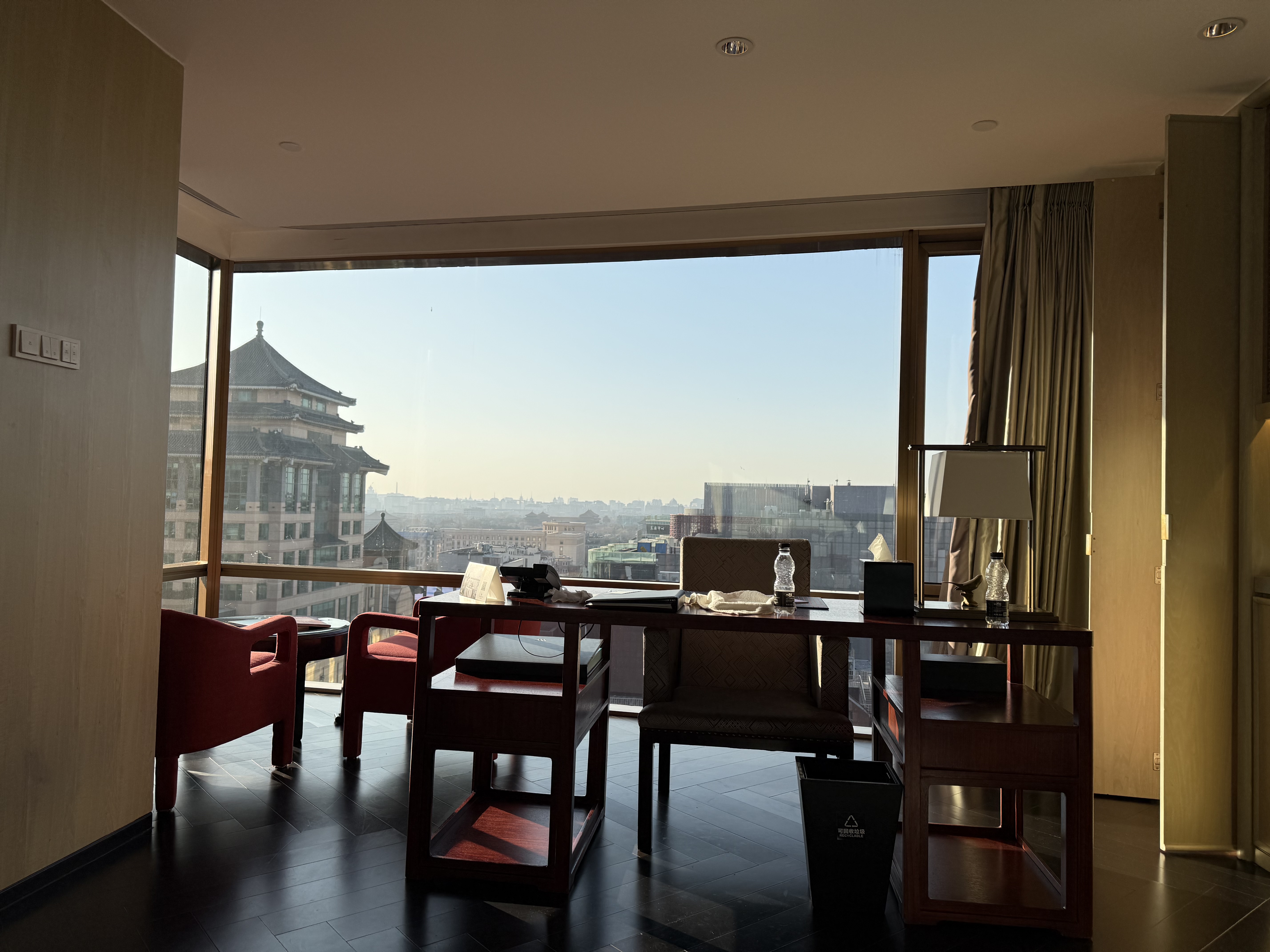 不带任何后缀的那家 doubletree by Hilton beijing 满足这几个要求,我住过也还行,不过 happy hour 一言难尽,没有下午茶。套房的装修也比较旧了,但是床很软 2333