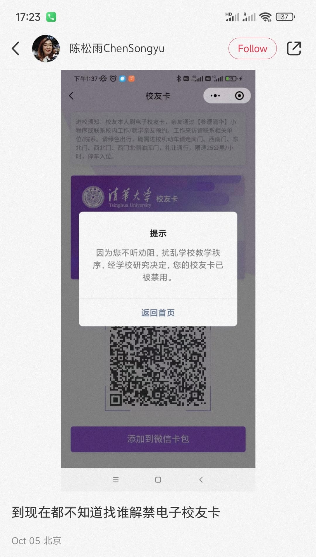 我记得疫情前清华可以直接走进去,北大要找黄牛一个人一百