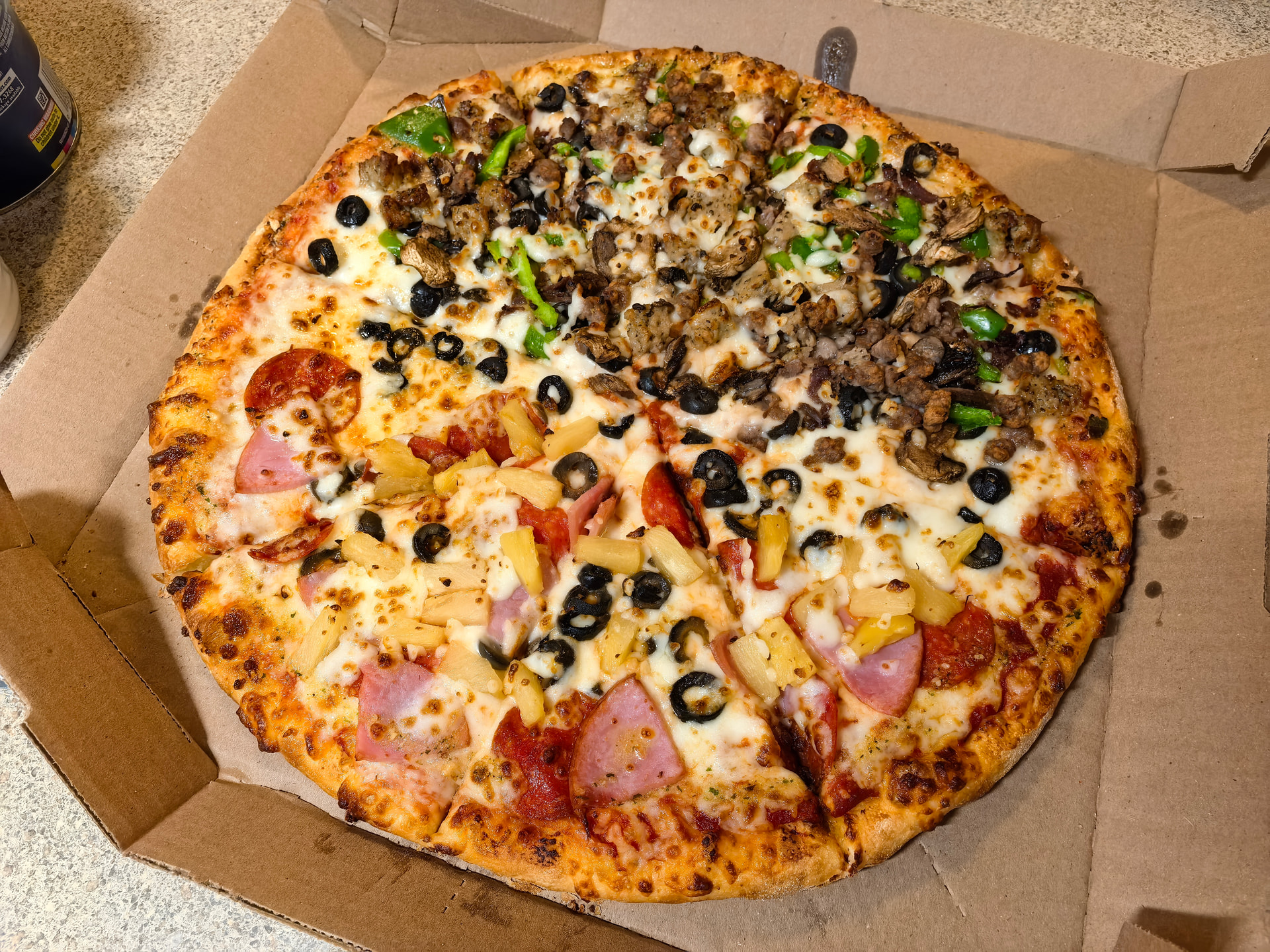 今天去吃了一个披萨,好多年没吃了,家门口就有 Dominos 但是一直没去过。料挺多,味道还行,吃到最后有点腻,想到中餐馆的麻辣牛腩牛肚牛腱米线比这个披萨还便宜 $0.2 感觉好像也没有很便宜。