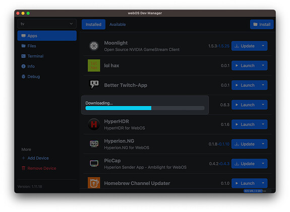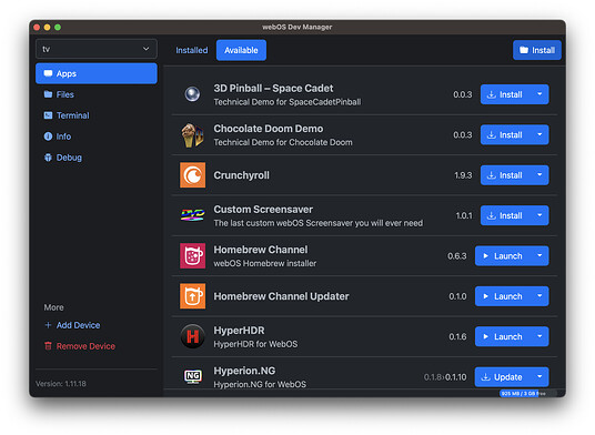 - 下载Device/DevMode Manager for webOS TV: Releases · webosbrew/dev-manager-desktop · GitHub