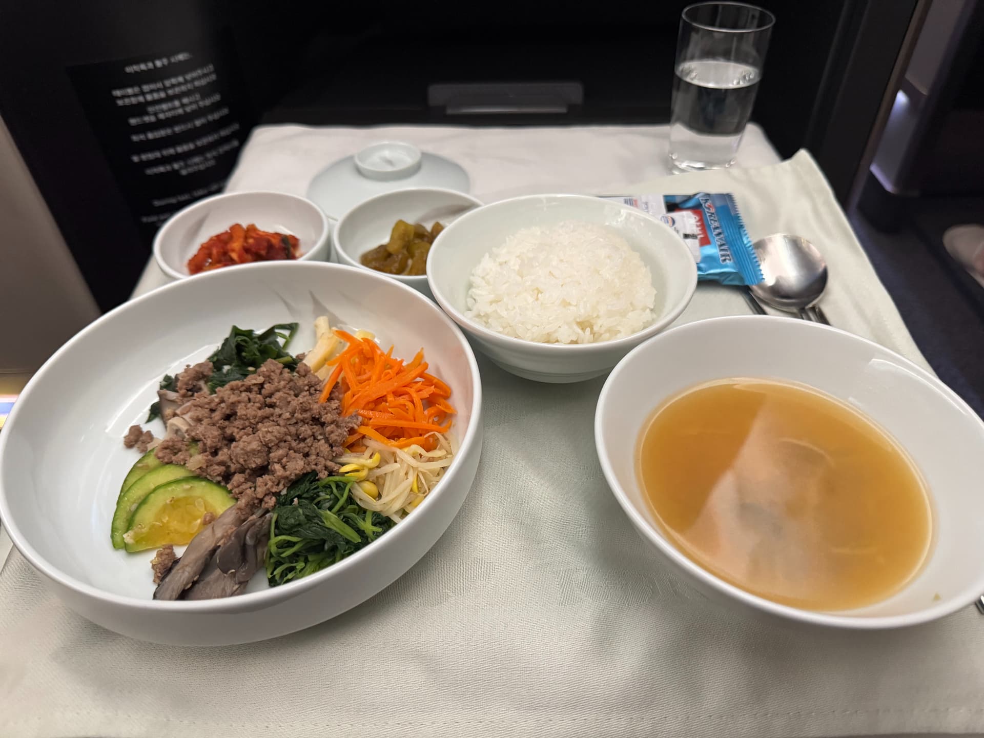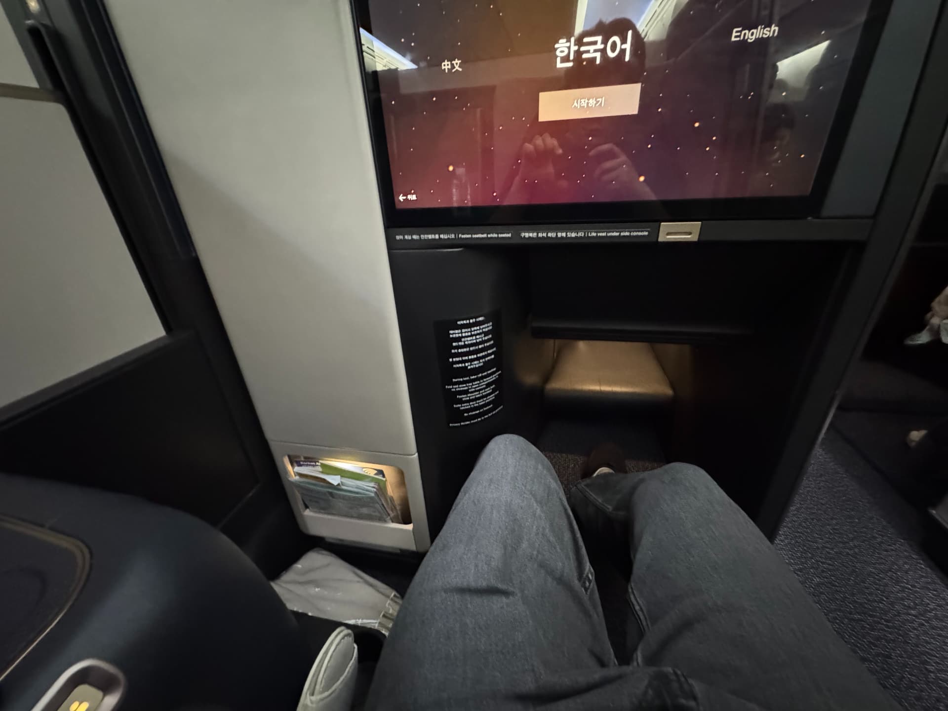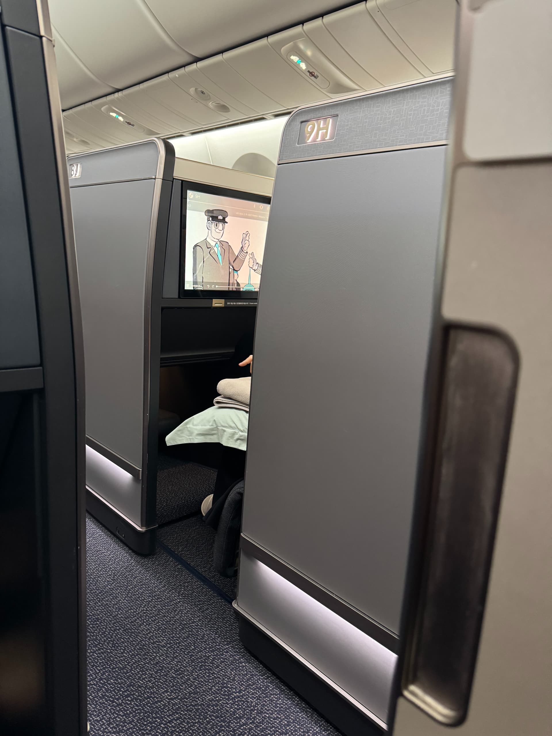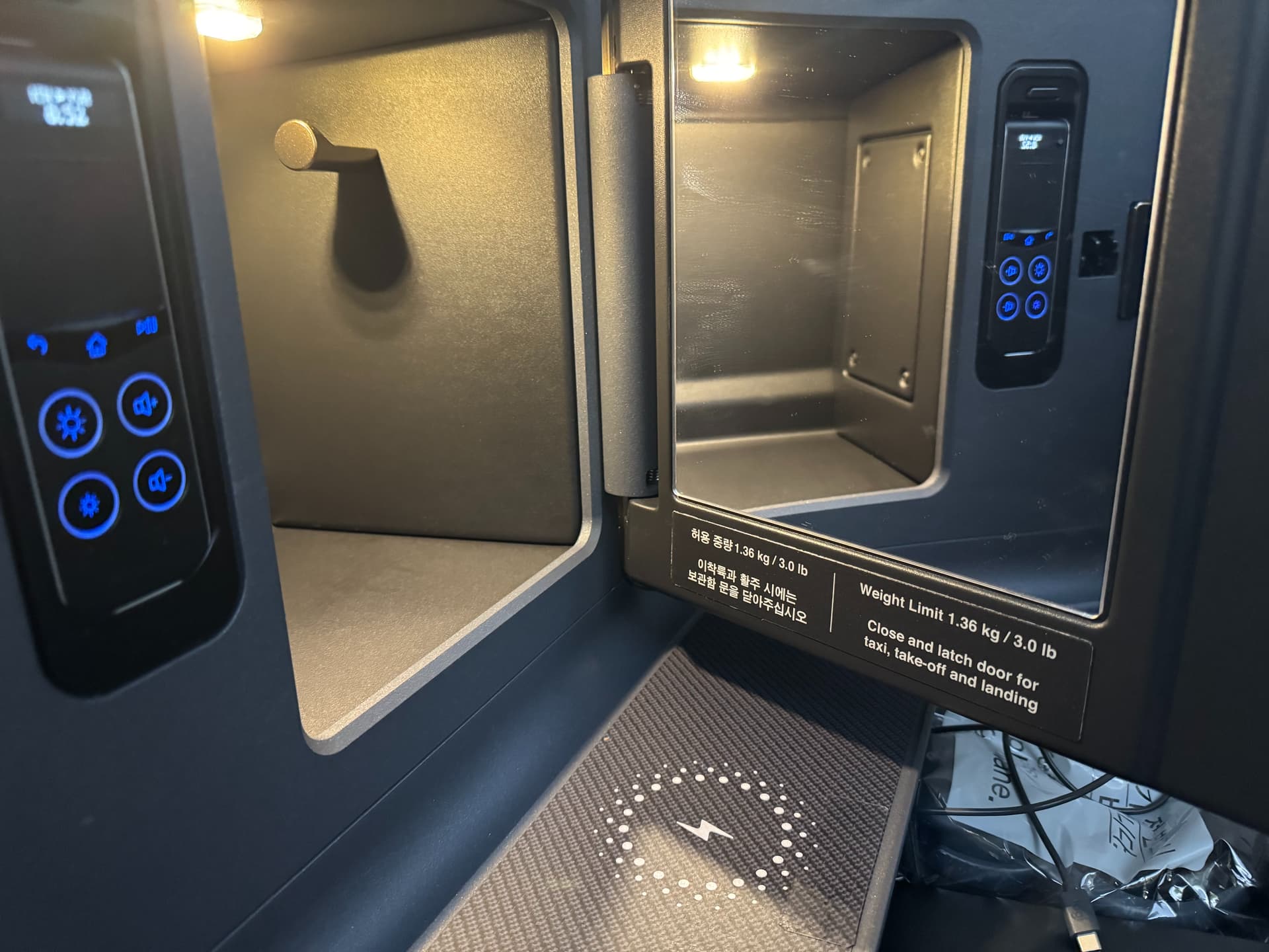 中国去美西,中途有一程是ICN - YVR。以为会是坐老的2-2-2布局的垃圾。没想到,竟然飞机上是新的1-2-1布局的prestige class。整体产品很像长荣的新商务产品。