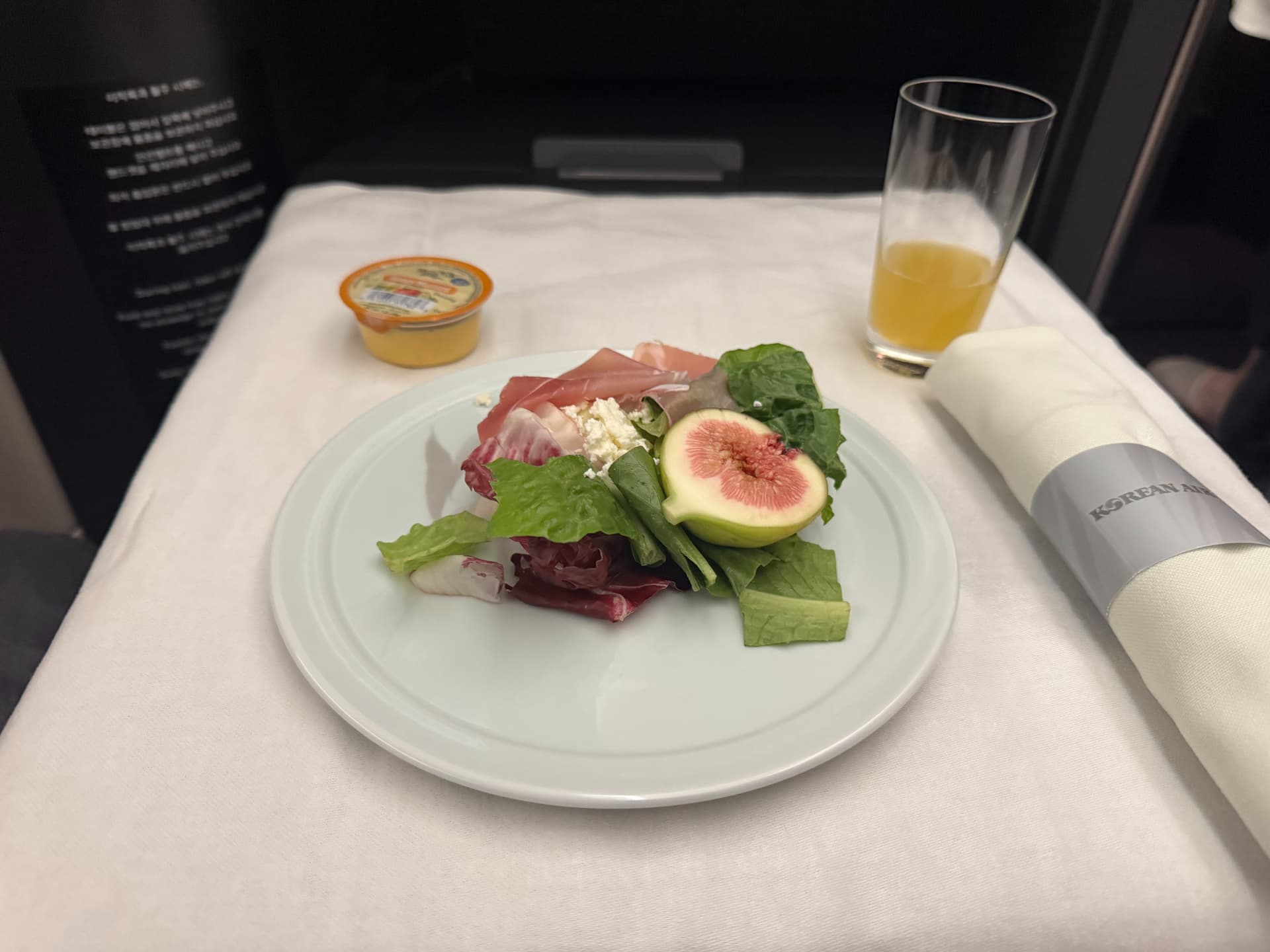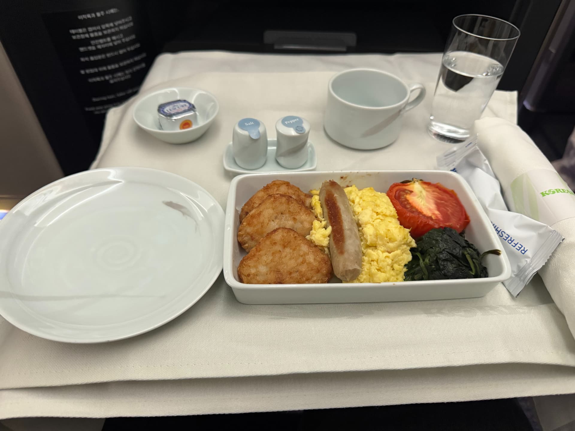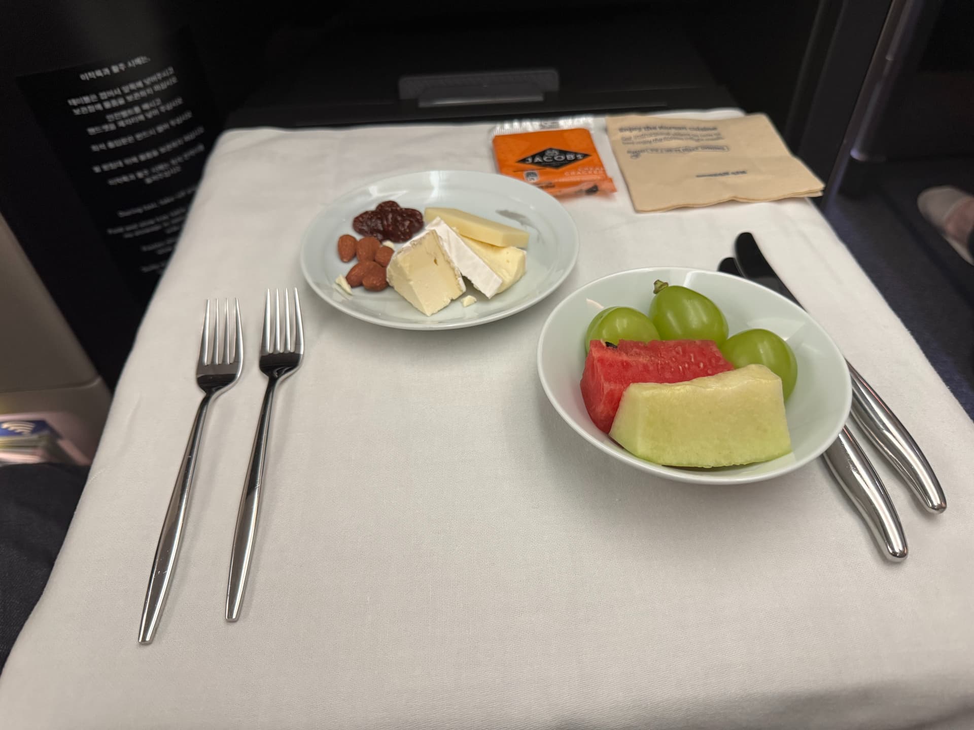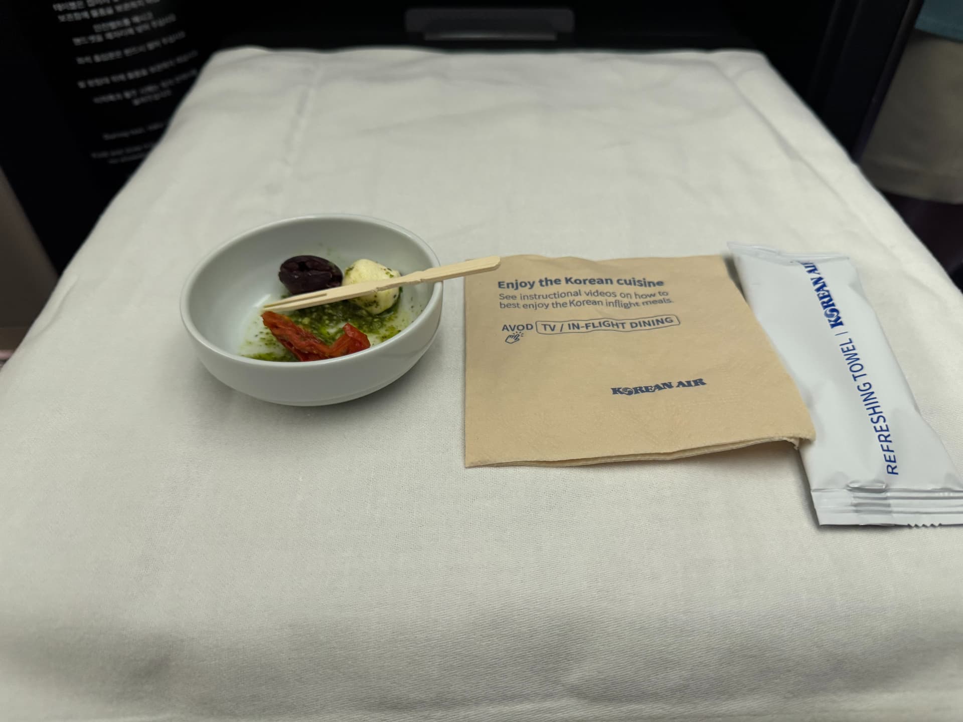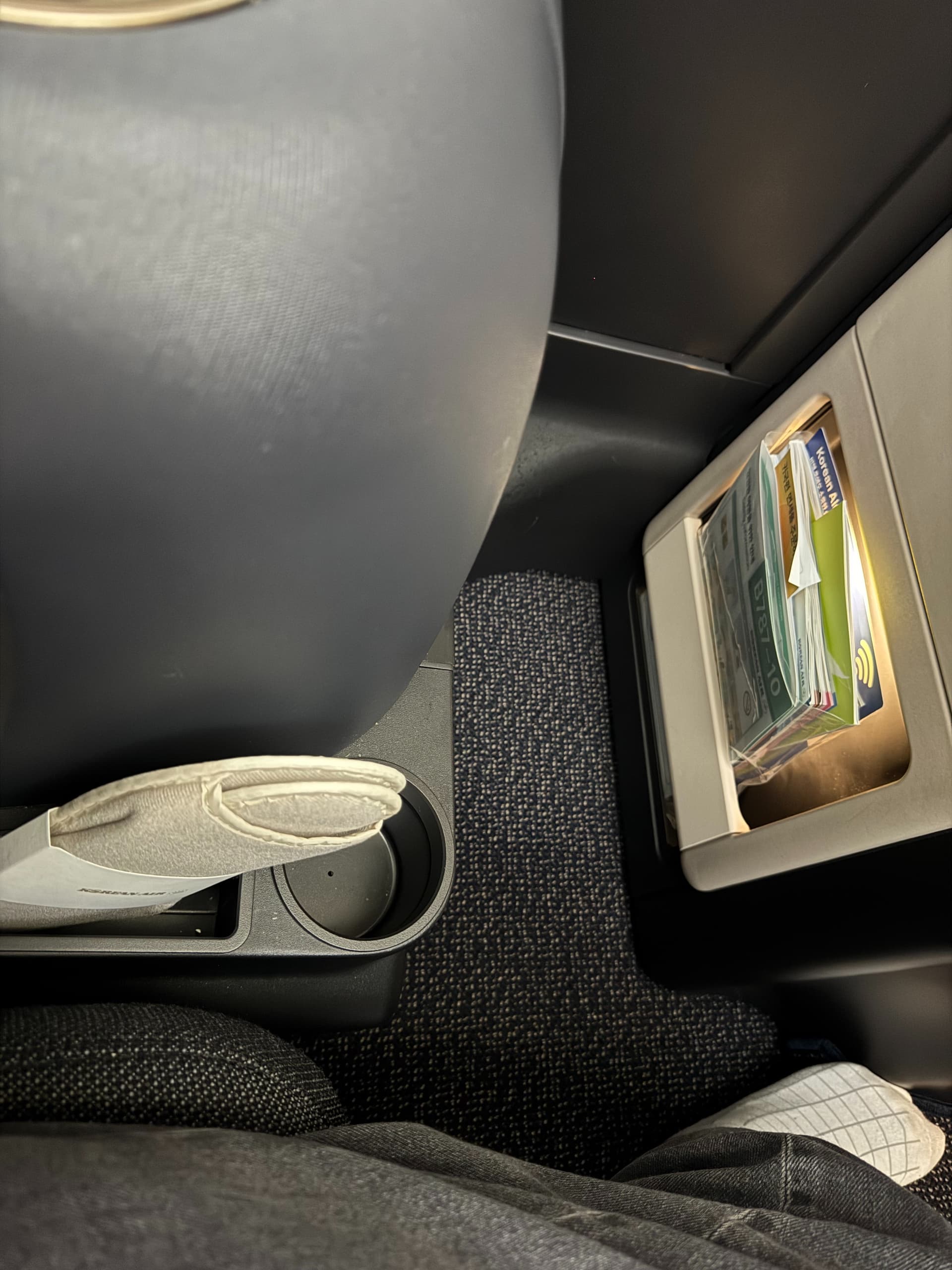 中国去美西,中途有一程是ICN - YVR。以为会是坐老的2-2-2布局的垃圾。没想到,竟然飞机上是新的1-2-1布局的prestige class。整体产品很像长荣的新商务产品。