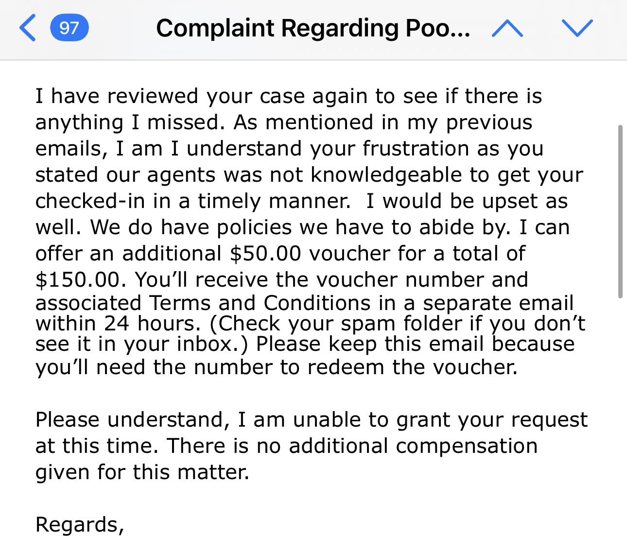 我当时撕了 当时一共就两个agent 我催了几次她就说如果我不想等可以先服务下一个customer