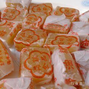 海丰,位于广东省汕尾市海丰县。猪油糖是当地流行的土特产之一,海丰人用猪油、面粉和食用糖混合在一起,做成了一小块一小块柔软的糖果。特点是甜而不腻、油润光滑、柔软适口。