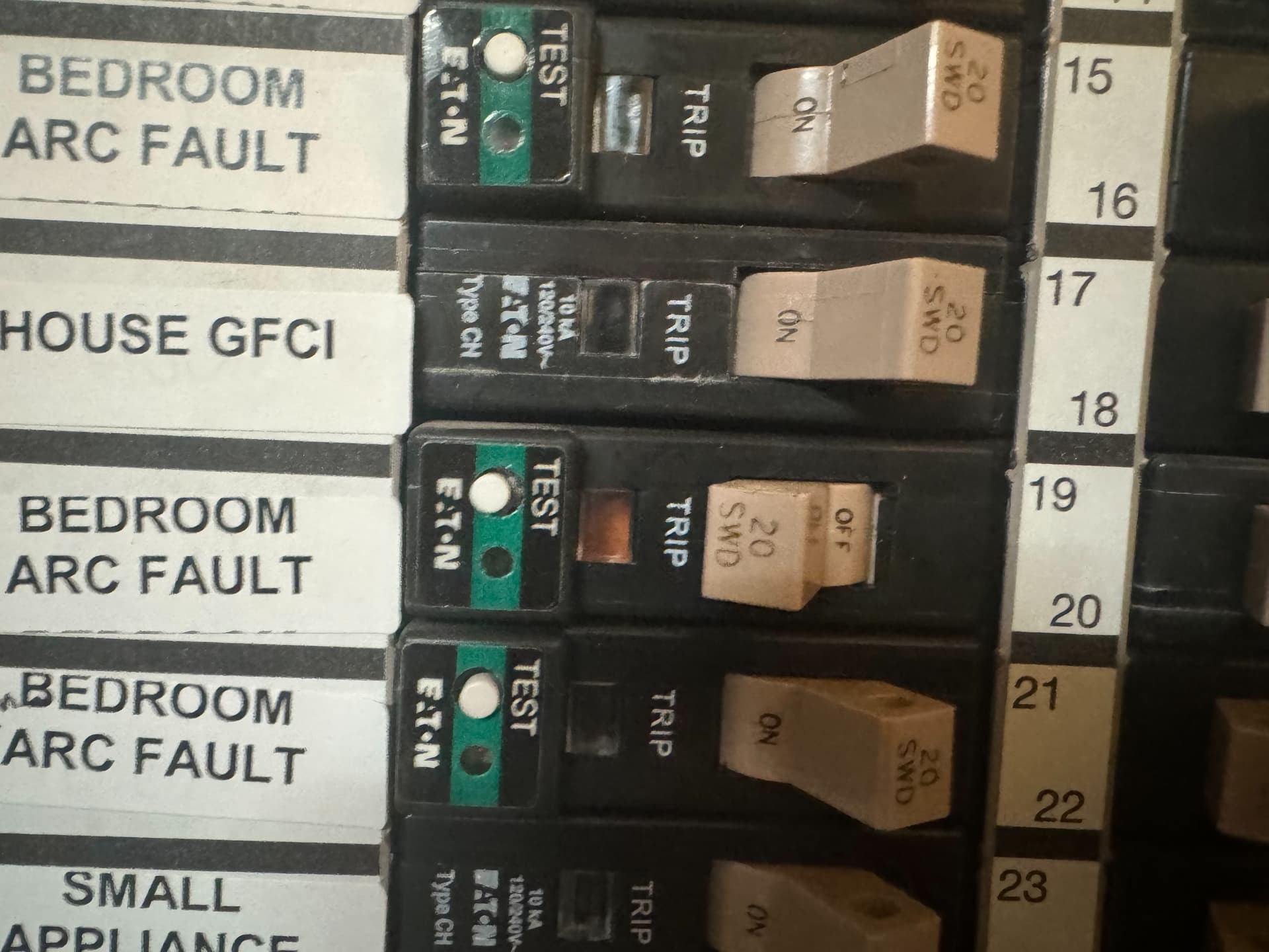 昨天家里一个房间的开关坏了,换了一个,可能是地线和火线靠得太近导致短路,重新开启断路器后直接冒出一阵火花,然后跳闸了。第一次看到trip flag,怎么切换断路器都没用,看来断路器是坏了。