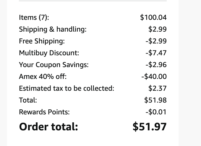 购物车显示了正确的折扣,但是因为 Apple Care 是 digital purchase 被拆单,email confirmation 两单都有正确的 prorated discount,但实际 order page 和扣钱都扣的 AirPods 原价,最后 Amex 积分也没扣。我觉得原因应该是拆单,也可能是我在那里不断试最低 redeem 多少 MR 才会有 % off 折扣然后购物车出现了 bug。