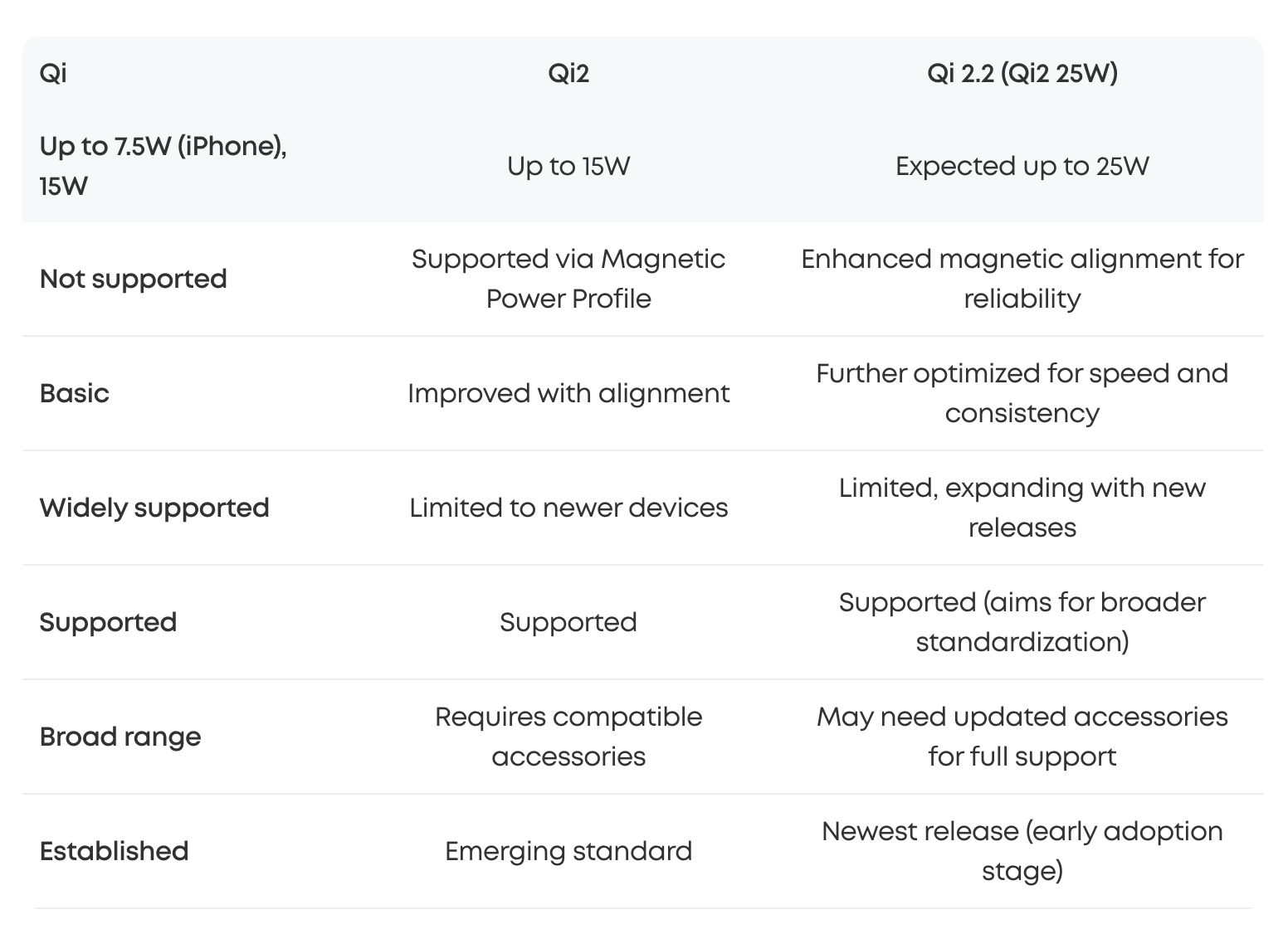 Qi 2.2 协议升级已经发布,主要改动其实就是把 MagSafe 25w 下放给 Qi 使用,所以现在可以官方支持 25w 无线充电了,同时 iPhone 17 也能直接兼容新的协议: