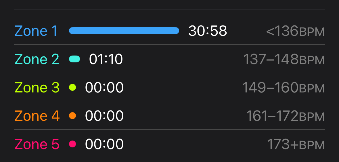 我才知道这个 zone 的划分居然还是因人而异的,你的 cut-off bpm 全都比我高了好多……