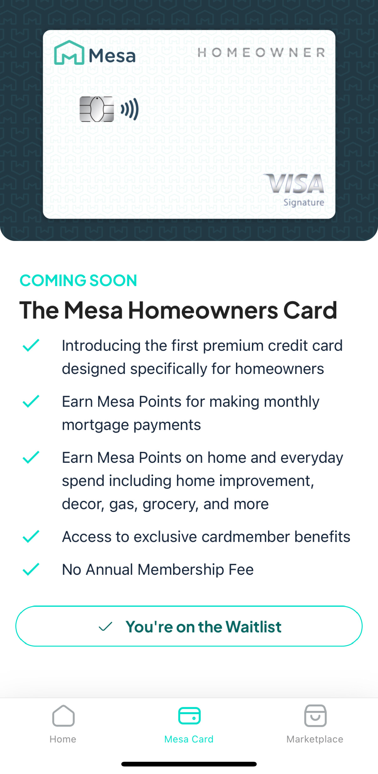 Earn Mesa Points on your monthly mortgage payments as well as accelerated points on home & everyday purchases made with the Mesa Homeowners Card. Download the Mesa App to join the waitlist.