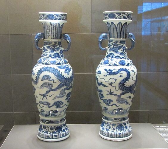 特地去看了一眼解说,彻底理解为啥是 世界最知名的一对儿花瓶了。原来是彻底开发了元青花这一整个类别啊。