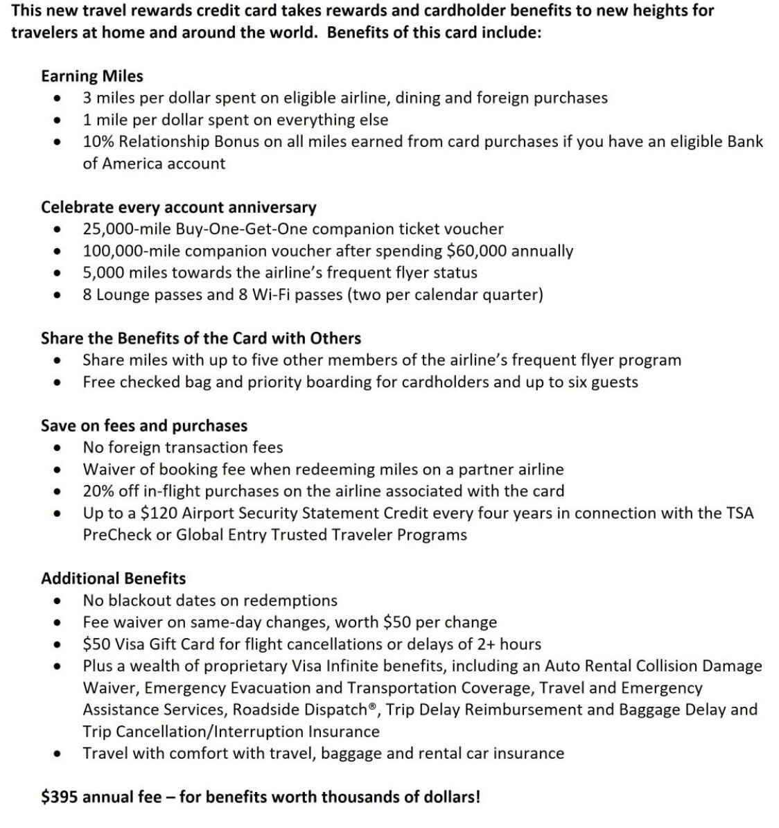 BOA关于航空卡的问卷。$395年费,两小时延误送$50VGC