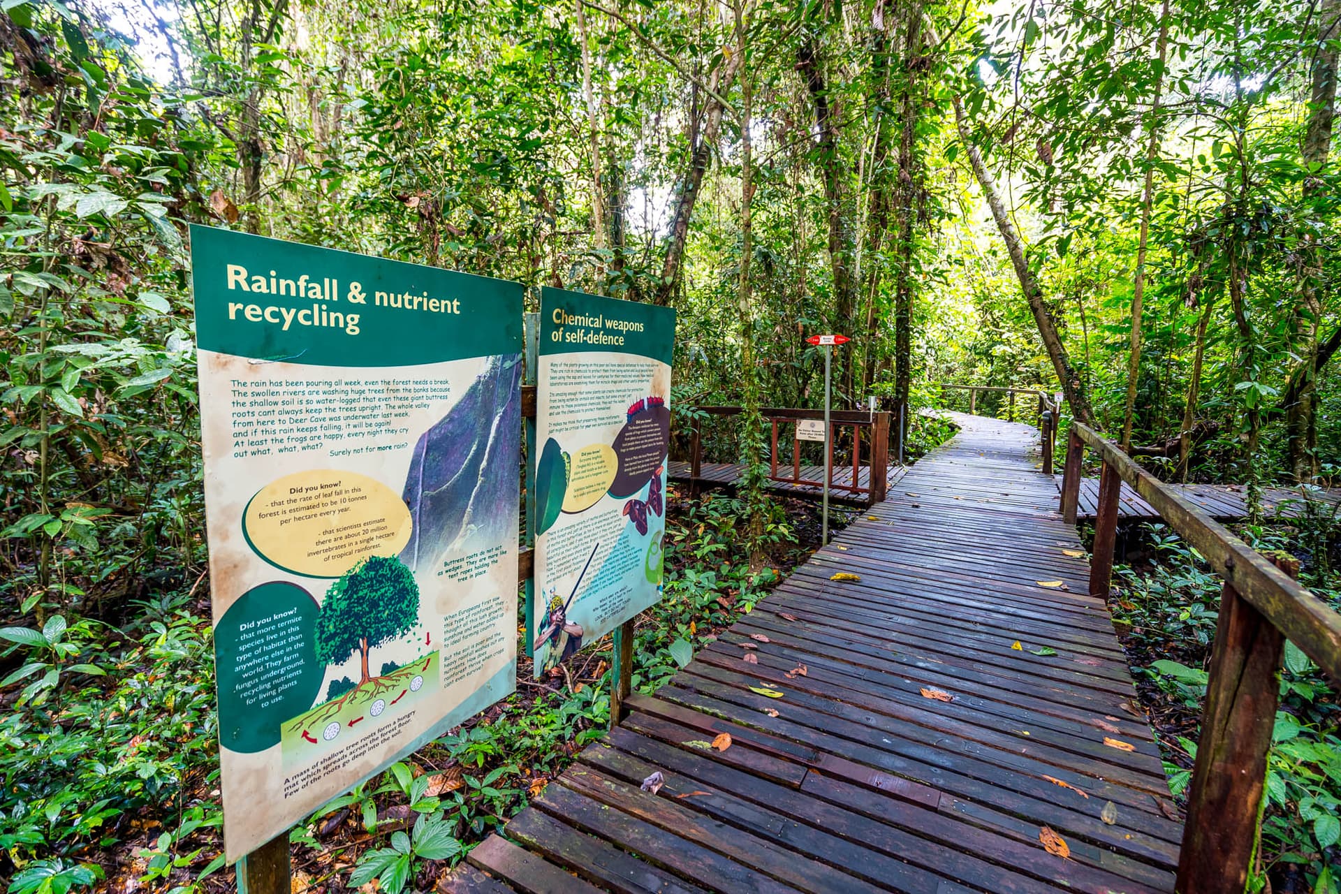 公园总部(Headquarter)附近的热带雨林铺设了步道,游客购买门票后可自行游览。你可以先去售票处隔壁的姆鲁探索中心(Mulu Discovery Centre)了解这片区域独特的地质构造,以及国家公园为保护环境而付出的努力,之后你就可以沿着路标的指示游览(别忘了在售票处拿份地图)。距售票处大约10分钟步行路程的树冠塔(Treetop Tower)可以让你从高处俯瞰雨林,但并非随时开放,可向售票处的工作人员询问。除开放自行游览的区域外,公园所有其它区域(包括所有洞穴)都必须在向导带领下进入。