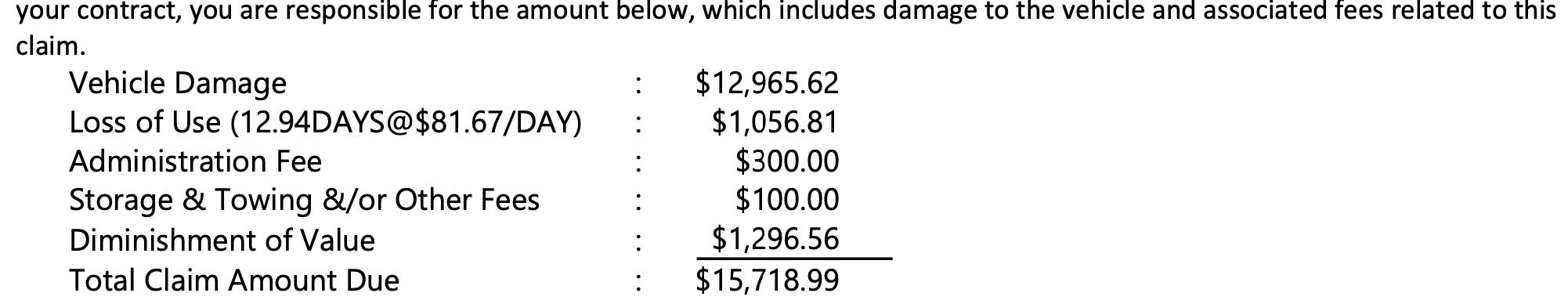 7.29 Avis 发了repair estimation 大约15.7k 包括了修车费和其他所有损失。当天上传所有材料。
